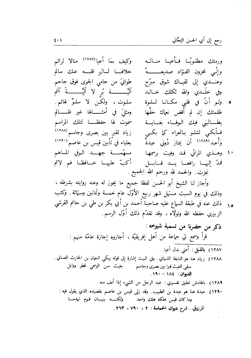 ذكر من حضرنا من تسمية شيوخه: قرأ وسمع لي جماعة من أهل إفريقية، أجازوه إجازة عامة منهم: