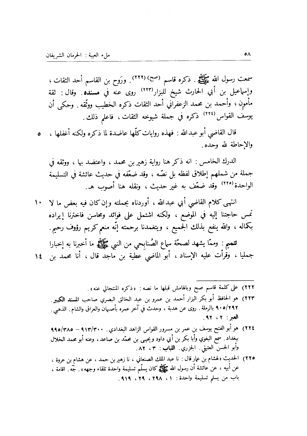 قال القاضي أبو عبد الله: فهذه روايات كلها عاضدة لما ذكره ولكنه أغفلها والإحاطة لله وحده.