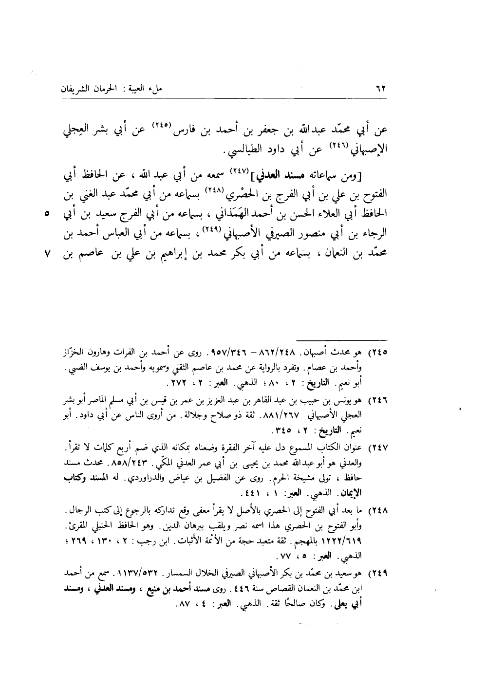 عن أبي محمد عبد الله بن جعفر بن أحمد بن فارس، عن أبي بشر العجلي الإصبهاني، عن أبي داود الطيالسي.