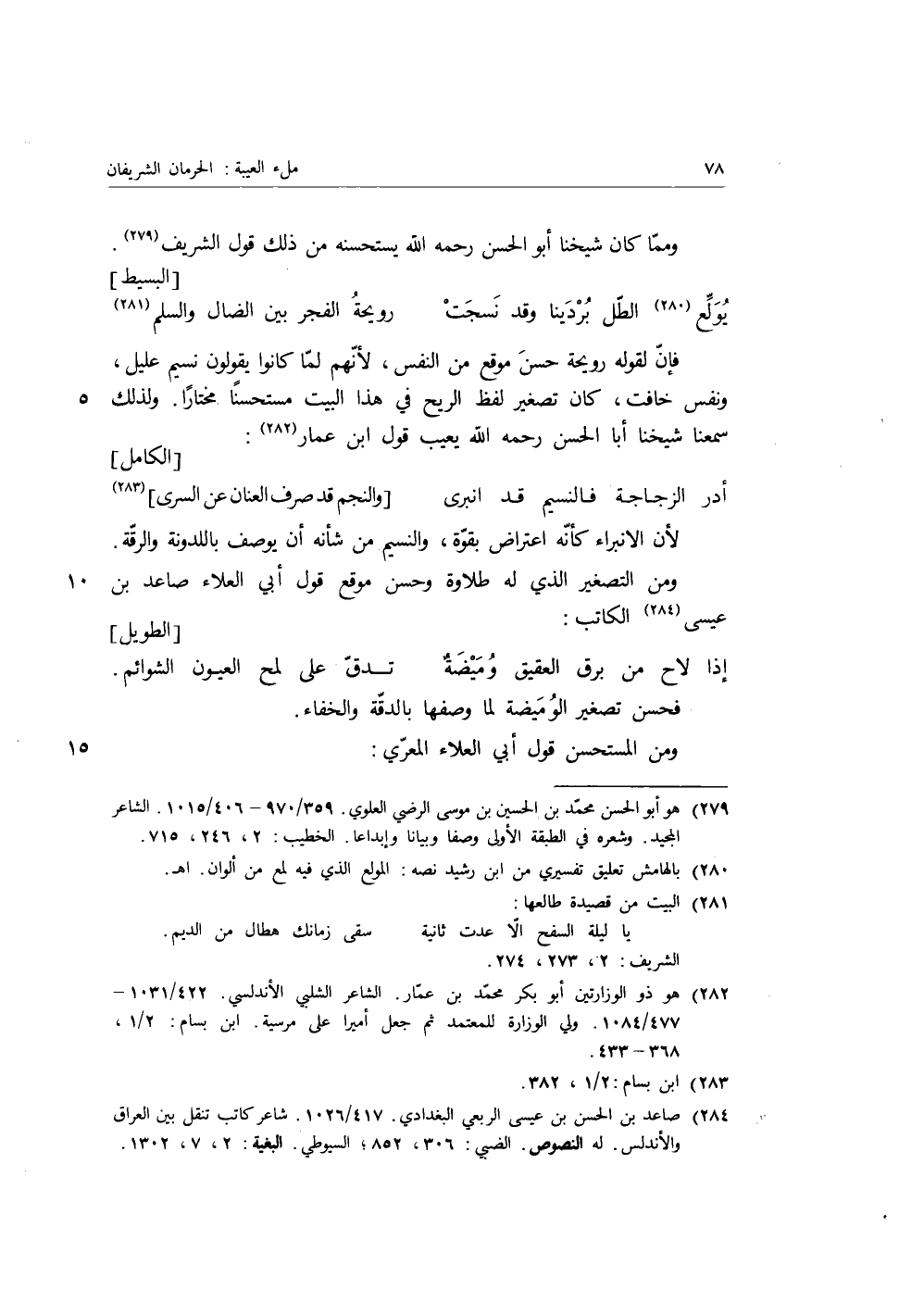 ومما كان شيخنا أبو الحسن رحمه الله يستحسنه من ذلك قول الشريف.