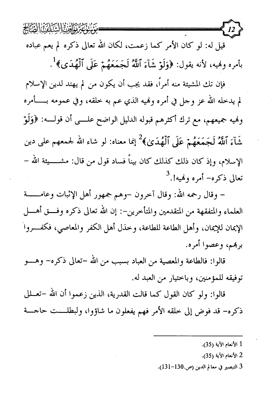 (¬3) التبصير في معالم الدين (ص.130 - 131).