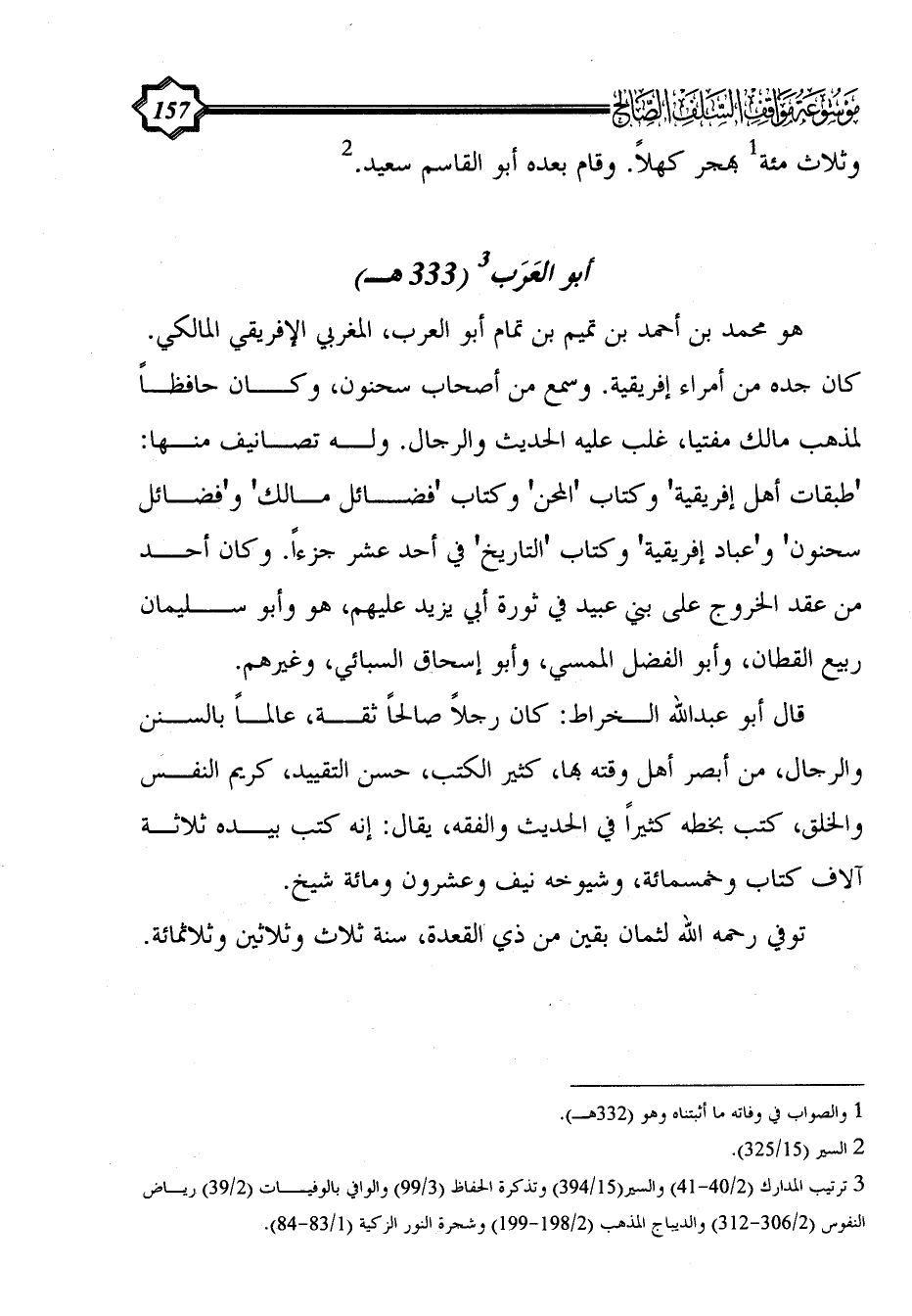 (¬3) ترتيب المدارك (2/ 40 - 41) والسير (15/ 394) وتذكرة الحفاظ (3/ 99) والوافي بالوفيات (2/ 39) رياض النفوس (2/ 306 - 312) والديباج المذهب (2/ 198 - 199) وشجرة النور الزكية (1/ 83 - 84).