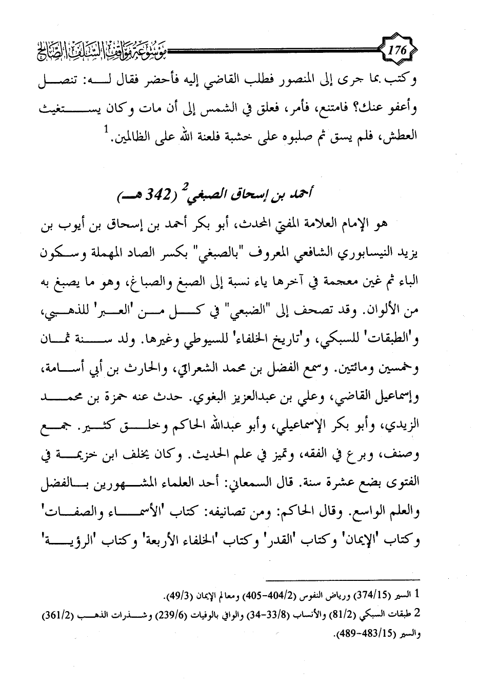(¬2) طبقات السبكي (2/ 81) والأنساب (8/ 33 - 34) والوافي بالوفيات (6/ 239) وشذرات الذهب (2/ 361) والسير (15/ 483 - 489).