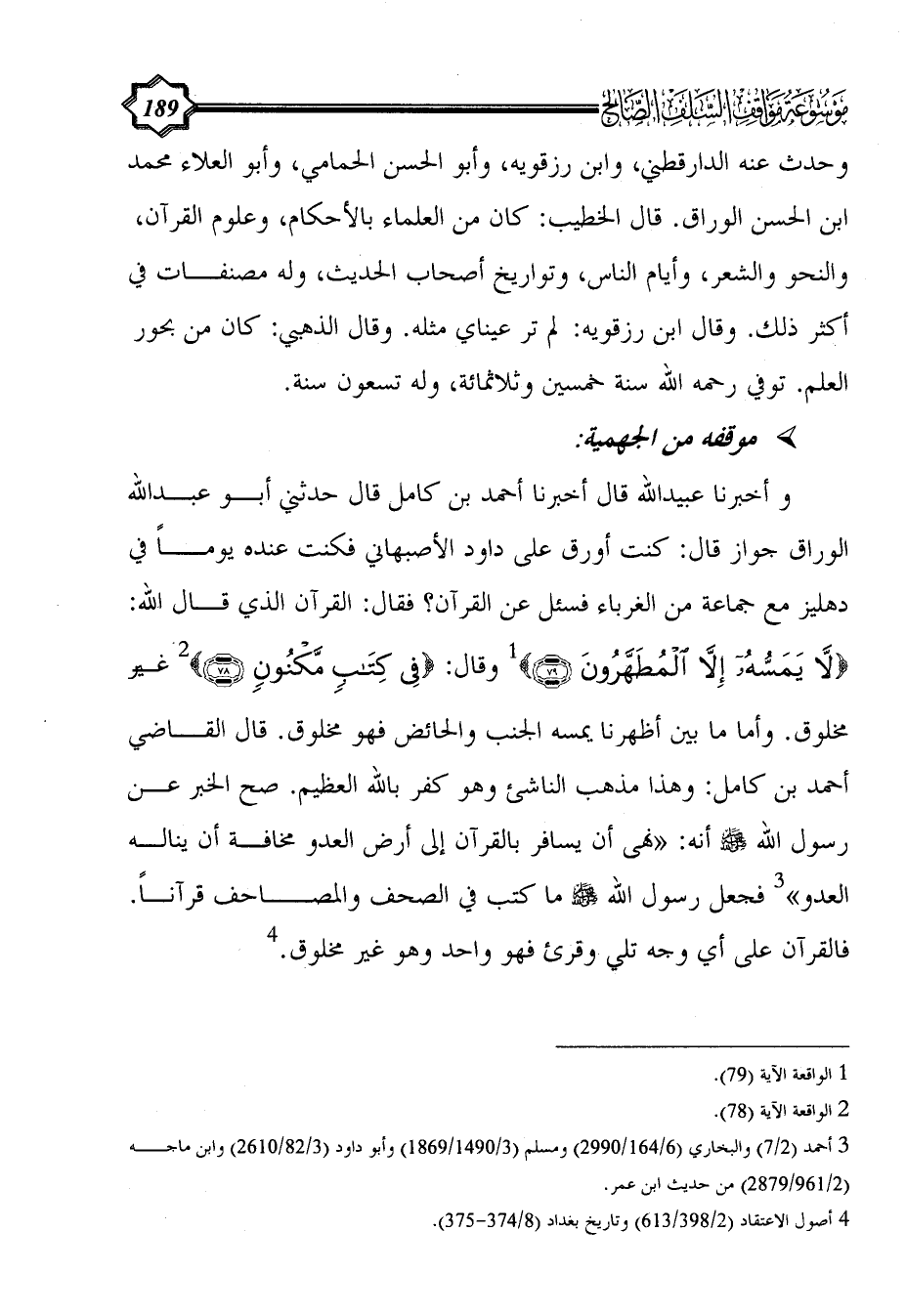 (¬4) أصول الاعتقاد (2/ 398/613) وتاريخ بغداد (8/ 374 - 375).