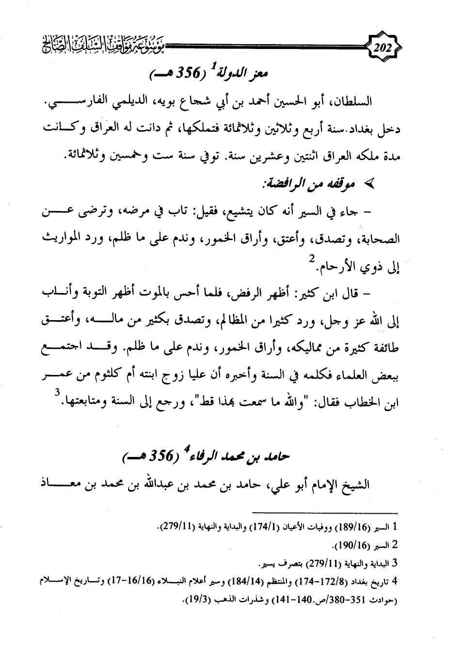 (¬4) تاريخ بغداد (8/ 172 - 174) والمنتظم (14/ 184) وسير أعلام النبلاء (16/ 16 - 17) وتاريخ الإسلام (حوادث 351 - 380/ص.140 - 141) وشذرات الذهب (3/ 19).