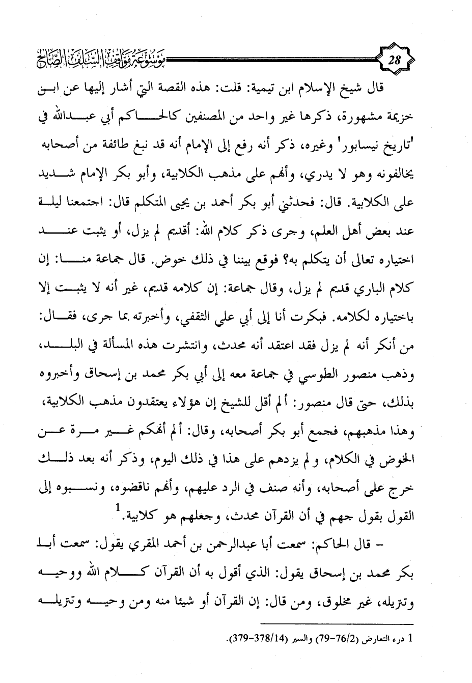 (¬1) درء التعارض (2/ 76 - 79) والسير (14/ 378 - 379).