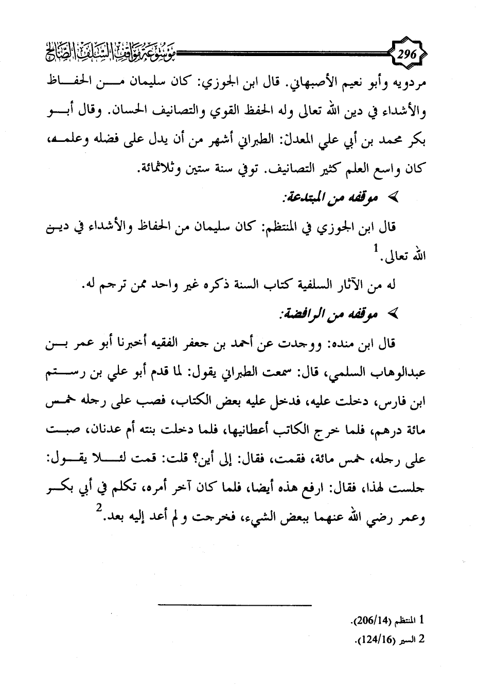 قال ابن الجوزي في المنتظم: كان سليمان من الحفاظ والأشداء في دين الله تعالى. (¬1)