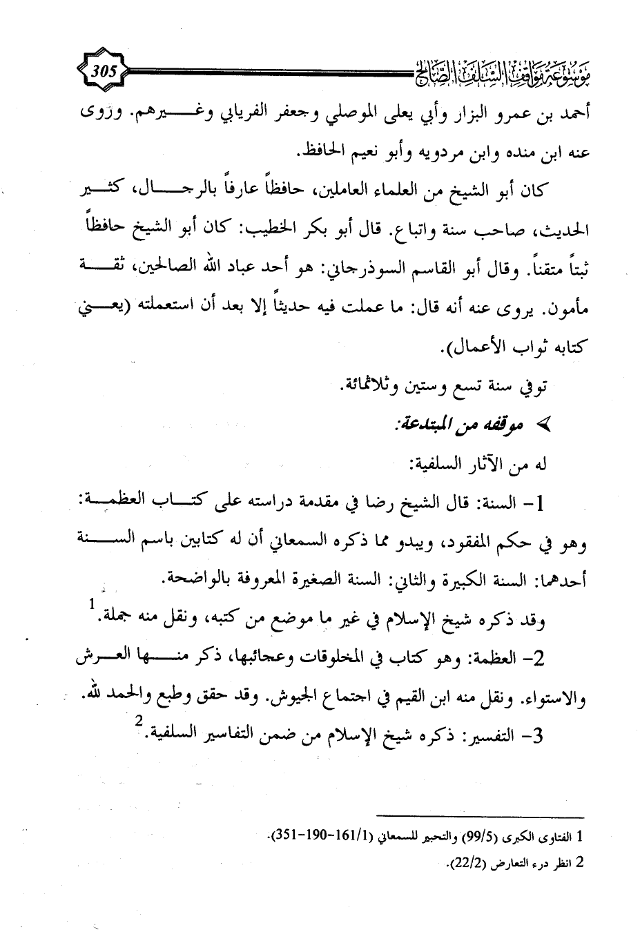 (¬1) الفتاوى الكبرى (5/ 99) والتحبير للسمعاني (1/ 161 - 190 - 351).