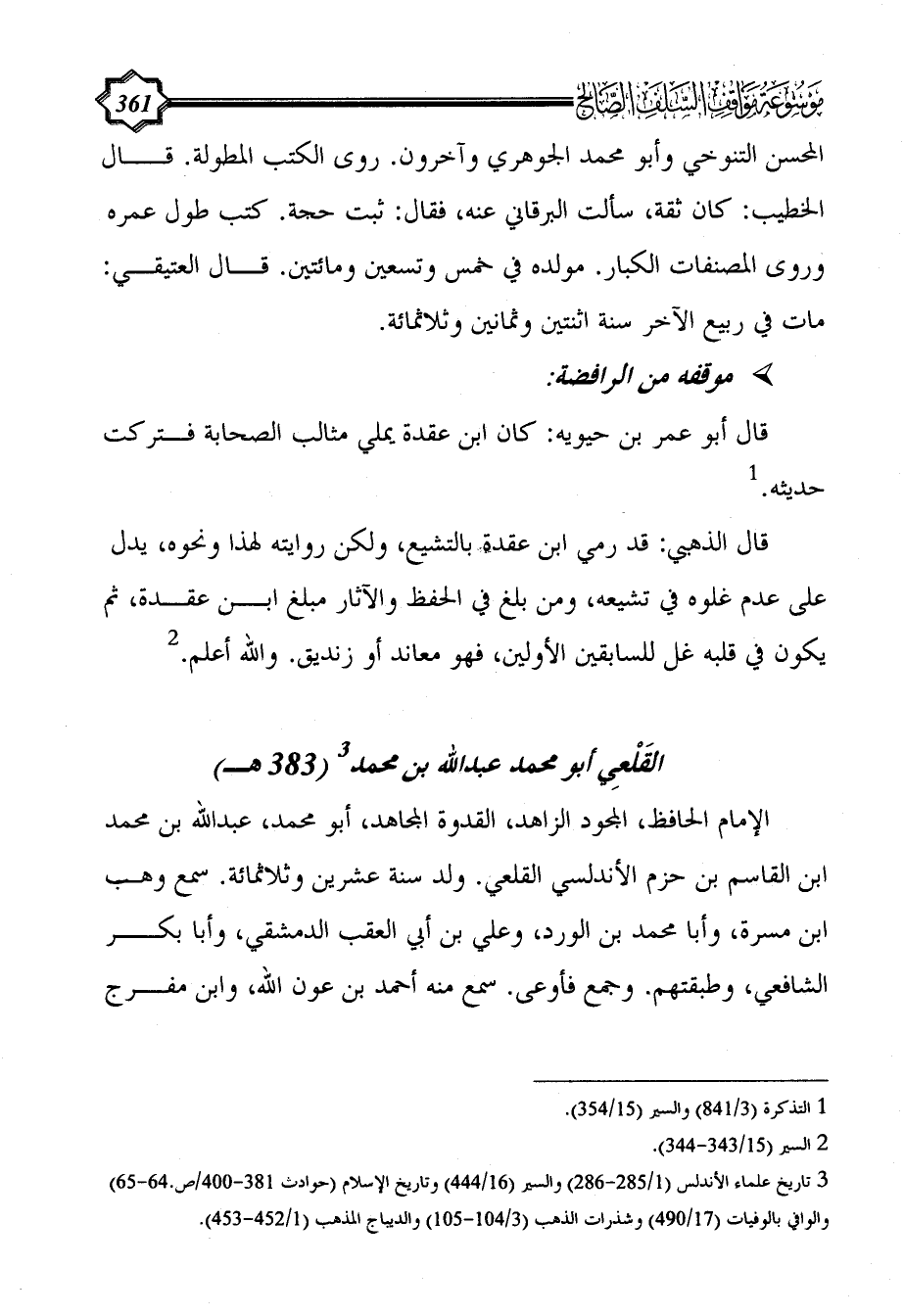 (¬3) تاريخ علماء الأندلس (1/ 285 - 286) والسير (16/ 444) وتاريخ الإسلام (حوادث 381 - 400/ص.64 - 65) والوافي بالوفيات (17/ 490) وشذرات الذهب (3/ 104 - 105) والديباج المذهب (1/ 452 - 453).