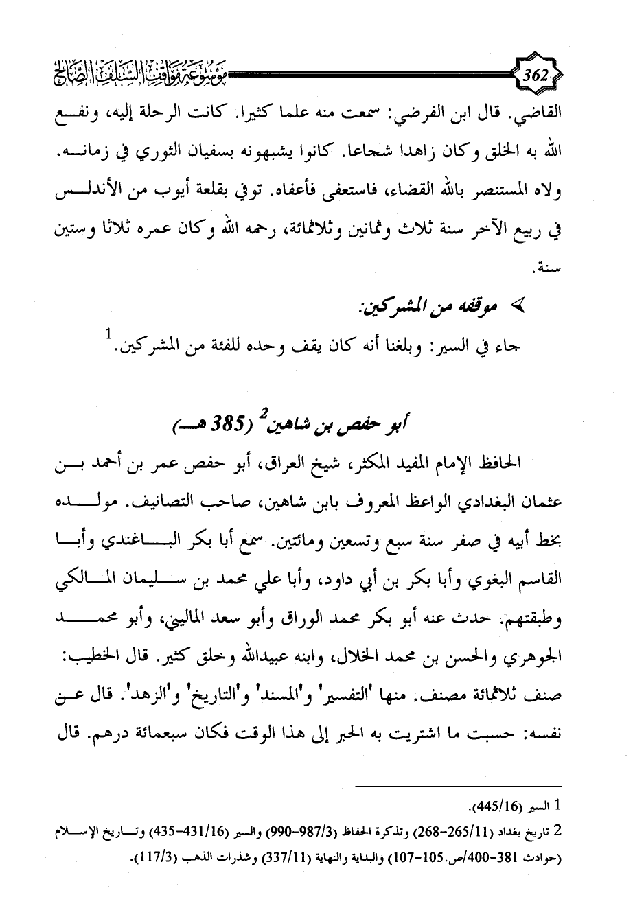 (¬2) تاريخ بغداد (11/ 265 - 268) وتذكرة الحفاظ (3/ 987 - 990) والسير (16/ 431 - 435) وتاريخ الإسلام (حوادث 381 - 400/ص.105 - 107) والبداية والنهاية (11/ 337) وشذرات الذهب (3/ 117).
