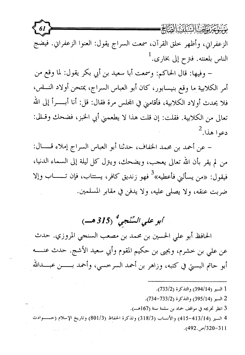 (¬4) السير (14/ 413 - 415) والأنساب (3/ 318) وتذكرة الحفاظ (3/ 801) وتاريخ الإسلام (حوادث 311 - 320/ص.492).