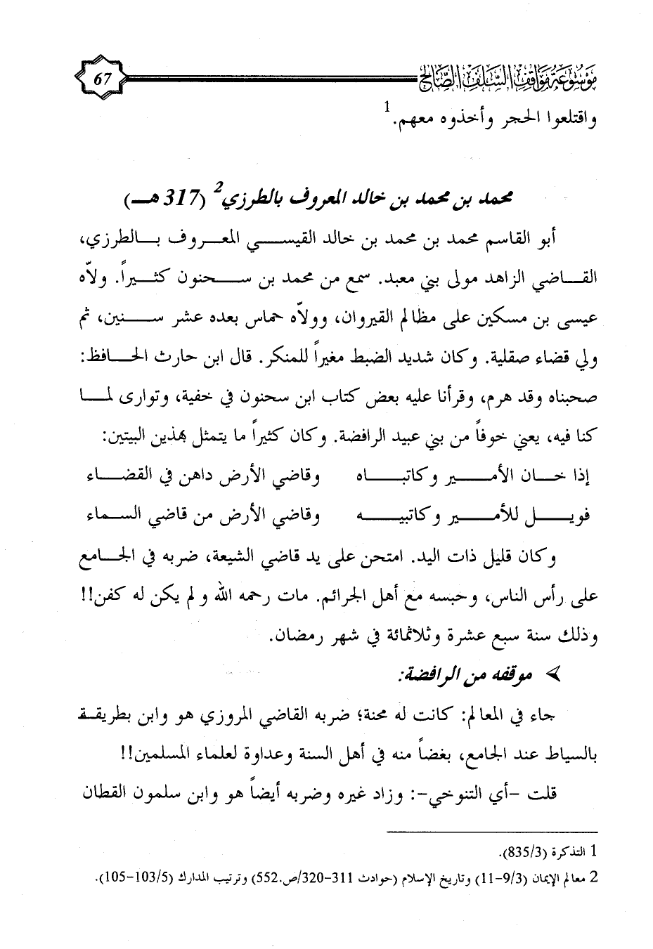 (¬2) معالم الإيمان (3/ 9 - 11) وتاريخ الإسلام (حوادث 311 - 320/ص.552) وترتيب المدارك (5/ 103 - 105).