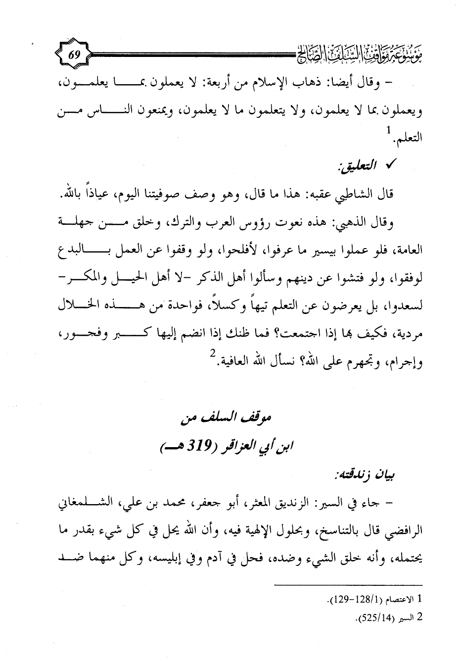 قال الشاطبي عقبه: هذا ما قال، وهو وصف صوفيتنا اليوم، عياذاً بالله.
