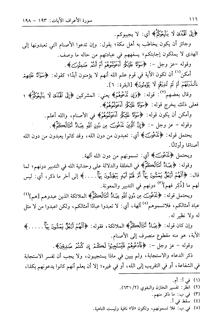 وأمكن أن يكون قوله: (سَوَاءٌ عَلَيْكُمْ أَدَعَوْتُمُوهُمْ) في الأصنام، واللَّه أعلم.