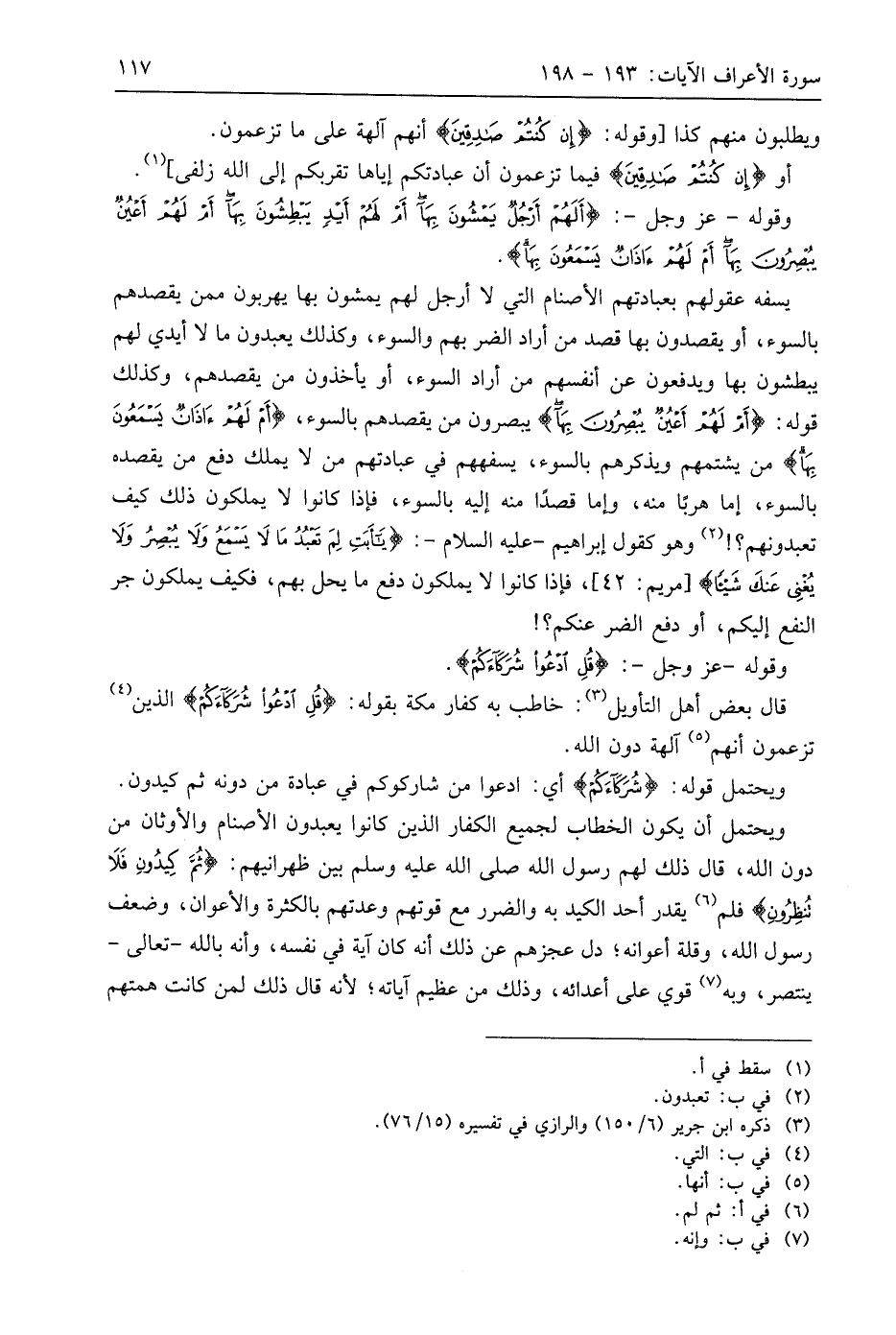 وقوله - عَزَّ وَجَلَّ -: (أَلَهُمْ أَرْجُلٌ يَمْشُونَ بِهَا أَمْ لَهُمْ أَيْدٍ يَبْطِشُونَ بِهَا أَمْ لَهُمْ أَعْيُنٌ يُبْصِرُونَ بِهَا أَمْ لَهُمْ آذَانٌ يَسْمَعُونَ بِهَا قُلِ ادْعُوا شُرَكَاءَكُمْ ثُمَّ كِيدُونِ فَلَا تُنْظِرُونِ (195)