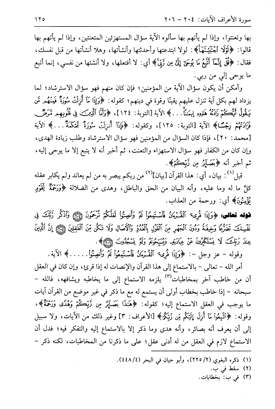 قوله تعالى: (وَإِذَا قُرِئَ الْقُرْآنُ فَاسْتَمِعُوا لَهُ وَأَنْصِتُوا لَعَلَّكُمْ تُرْحَمُونَ (204) وَاذْكُرْ رَبَّكَ فِي نَفْسِكَ تَضَرُّعًا وَخِيفَةً وَدُونَ الْجَهْرِ مِنَ الْقَوْلِ بِالْغُدُوِّ وَالْآصَالِ وَلَا تَكُنْ مِنَ الْغَافِلِينَ (205) إِنَّ الَّذِينَ عِنْدَ رَبِّكَ لَا يَسْتَكْبِرُونَ عَنْ عِبَادَتِهِ وَيُسَبِّحُونَهُ وَلَهُ يَسْجُدُونَ (206)