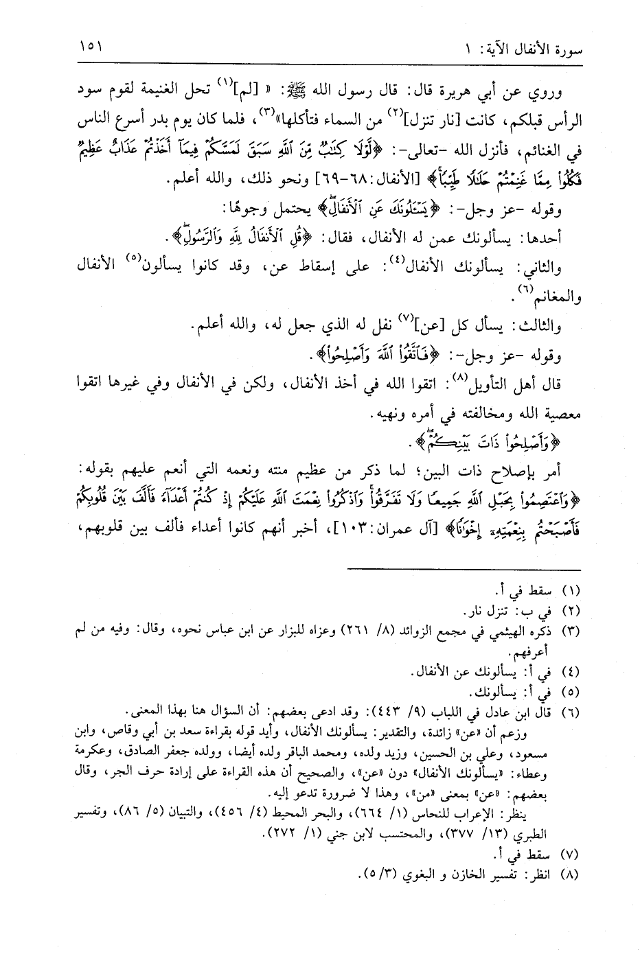 وقوله - عَزَّ وَجَلَّ -: (يَسْأَلُونَكَ عَنِ الأَنفَالِ) يحتمل وجوهًا: