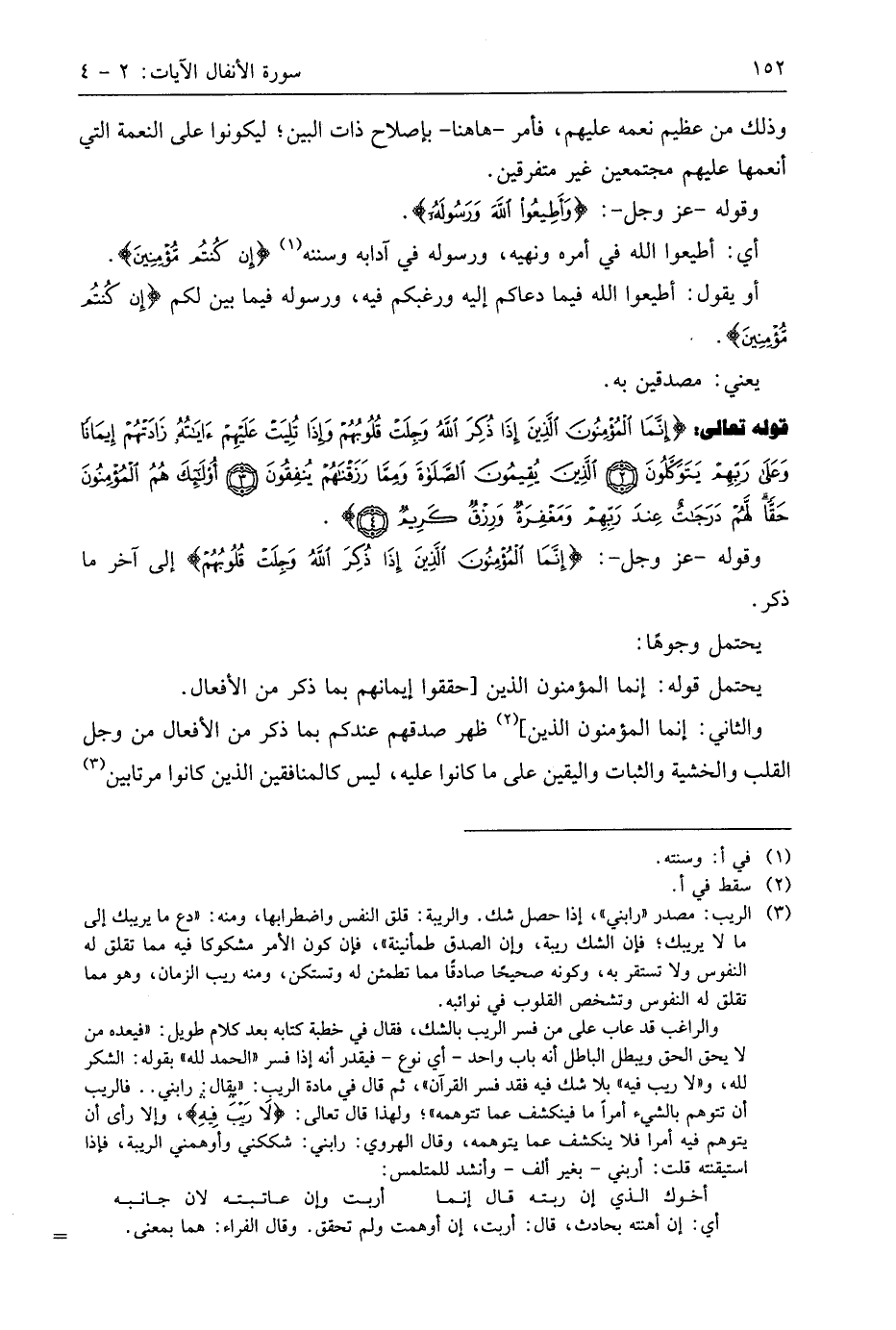 قوله تعالى: (إِنَّمَا الْمُؤْمِنُونَ الَّذِينَ إِذَا ذُكِرَ اللَّهُ وَجِلَتْ قُلُوبُهُمْ وَإِذَا تُلِيَتْ عَلَيْهِمْ آيَاتُهُ زَادَتْهُمْ إِيمَانًا وَعَلَى رَبِّهِمْ يَتَوَكَّلُونَ (2) الَّذِينَ يُقِيمُونَ الصَّلَاةَ وَمِمَّا رَزَقْنَاهُمْ يُنْفِقُونَ (3) أُولَئِكَ هُمُ الْمُؤْمِنُونَ حَقًّا لَهُمْ دَرَجَاتٌ عِنْدَ رَبِّهِمْ وَمَغْفِرَةٌ وَرِزْقٌ كَرِيمٌ (4)