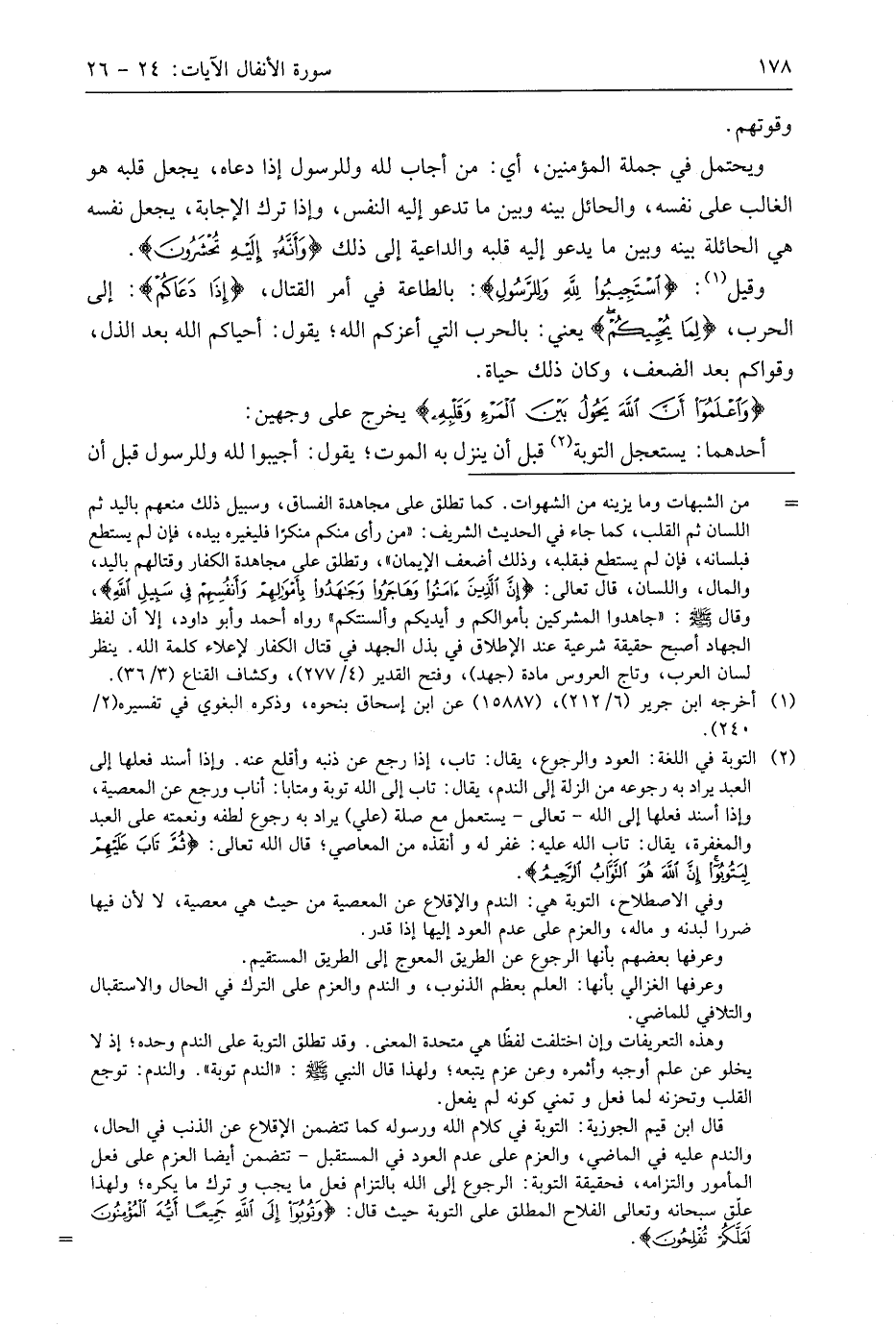 وقيل: (اسْتَجِيبُوا لِلَّهِ وَلِلرَّسُولِ): بالطاعة في أمر القتال، (إِذَا دَعَاكُمْ): إلى الحرب، (لِمَا يُحْيِيكُمْ) يعني: بالحرب التي أعزكم اللَّه؛ يقول: أحياكم اللَّه بعد الذل، وقواكم بعد الضعف، وكان ذلك حياة.