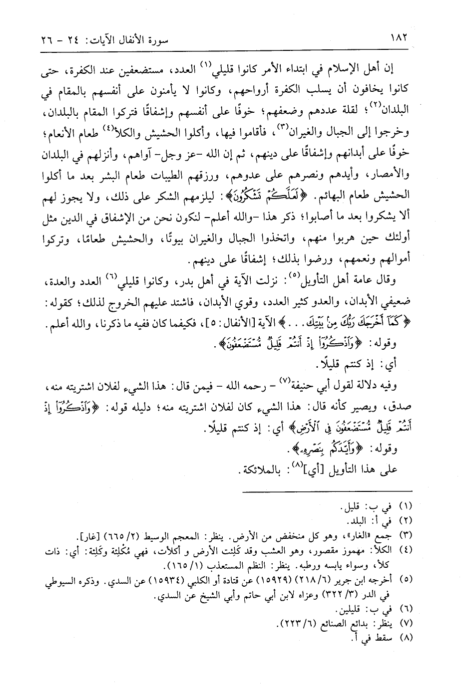 إن أهل الإسلام في ابتداء الأمر كانوا قليلي العدد، مستضعفين عند الكفرة، حتى كانوا يخافون أن يسلب الكفرة أرواحهم، وكانوا لا يأمنون على أنفسهم بالمقام في البلدان؛ لقلة عددهم وضعفهم؛ خوفًا على أنفسهم وإشفاقًا فتركوا المقام بالبلدان، وخرجوا إلى الجبال والغيران، فأقاموا فيها، وأكلوا الحشيش والكلأ طعام الأنعام؛ خوفا على أبدانهم وإشفاقًا على دينهم، ثم إن اللَّه - عَزَّ وَجَلَّ - آواهم، وأنزلهم في البلدان والأمصار، وأيدهم ونصرهم على عدوهم، ورزقهم الطيبات طعام البشر بعد ما أكلوا الحشيمش طعام البهائم. (لَعَلَّكُمْ تَشْكُرُونَ): ليلزمهم الشكر على ذلك، ولا يجوز لهم ألا يشكروا بعد ما أصابوا؛ ذكر هذا - واللَّه أعلم - لنكون نحن من الإشفاق في الدِّين مثل أُولَئِكَ حين هربوا منهم، واتخذوا الجبال والغيران بيوتًا، والحشيش طعاما، وتركوا أموالهم ونعمهم، ورضوا بذلك؛ إشفاقًا على دينهم.