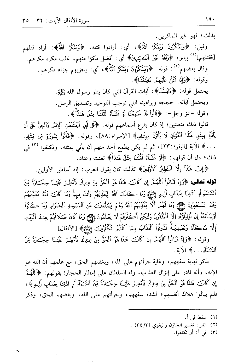 قوله تعالى: (وَإِذْ قَالُوا اللَّهُمَّ إِنْ كَانَ هَذَا هُوَ الْحَقَّ مِنْ عِنْدِكَ فَأَمْطِرْ عَلَيْنَا حِجَارَةً مِنَ السَّمَاءِ أَوِ ائْتِنَا بِعَذَابٍ أَلِيمٍ (32) وَمَا كَانَ اللَّهُ لِيُعَذِّبَهُمْ وَأَنْتَ فِيهِمْ وَمَا كَانَ اللَّهُ مُعَذِّبَهُمْ وَهُمْ يَسْتَغْفِرُونَ (33) وَمَا لَهُمْ أَلَّا يُعَذِّبَهُمُ اللَّهُ وَهُمْ يَصُدُّونَ عَنِ الْمَسْجِدِ الْحَرَامِ وَمَا كَانُوا أَوْلِيَاءَهُ إِنْ أَوْلِيَاؤُهُ إِلَّا الْمُتَّقُونَ وَلَكِنَّ أَكْثَرَهُمْ لَا يَعْلَمُونَ (34) وَمَا كَانَ صَلَاتُهُمْ عِنْدَ الْبَيْتِ إِلَّا مُكَاءً وَتَصْدِيَةً فَذُوقُوا الْعَذَابَ بِمَا كُنْتُمْ تَكْفُرُونَ (35)