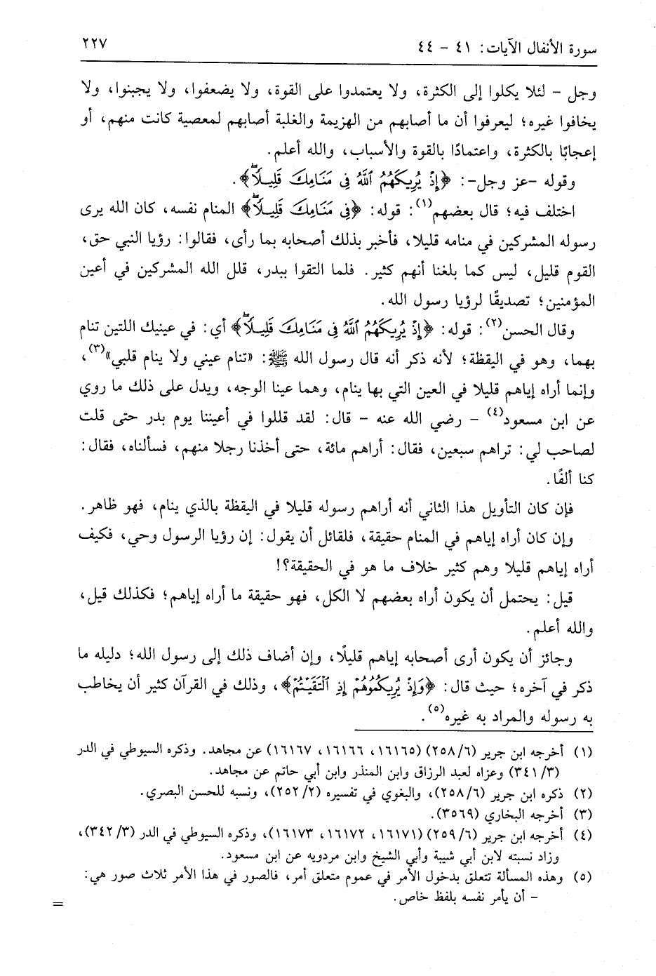 وقوله - عَزَّ وَجَلَّ -: (إِذْ يُرِيكَهُمُ اللَّهُ فِي مَنَامِكَ قَلِيلًا ... (43)