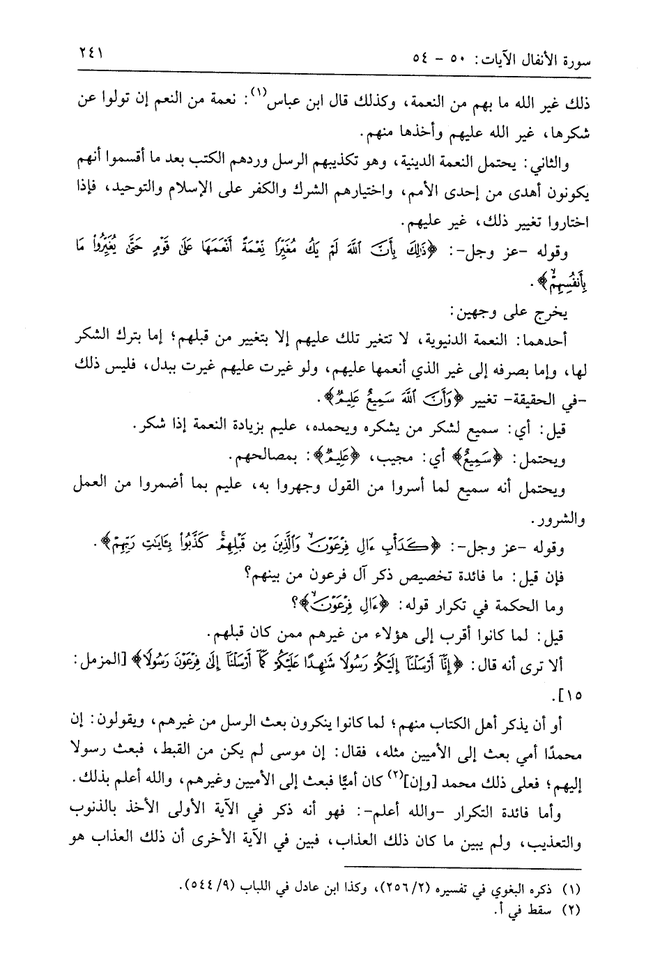 وقوله - عَزَّ وَجَلَّ -: (كَدَأْبِ آلِ فِرْعَوْنَ وَالَّذِينَ مِنْ قَبْلِهِمْ كَذَّبُوا بِآيَاتِ رَبِّهِمْ فَأَهْلَكْنَاهُمْ بِذُنُوبِهِمْ وَأَغْرَقْنَا آلَ فِرْعَوْنَ وَكُلٌّ كَانُوا ظَالِمِينَ (54)
