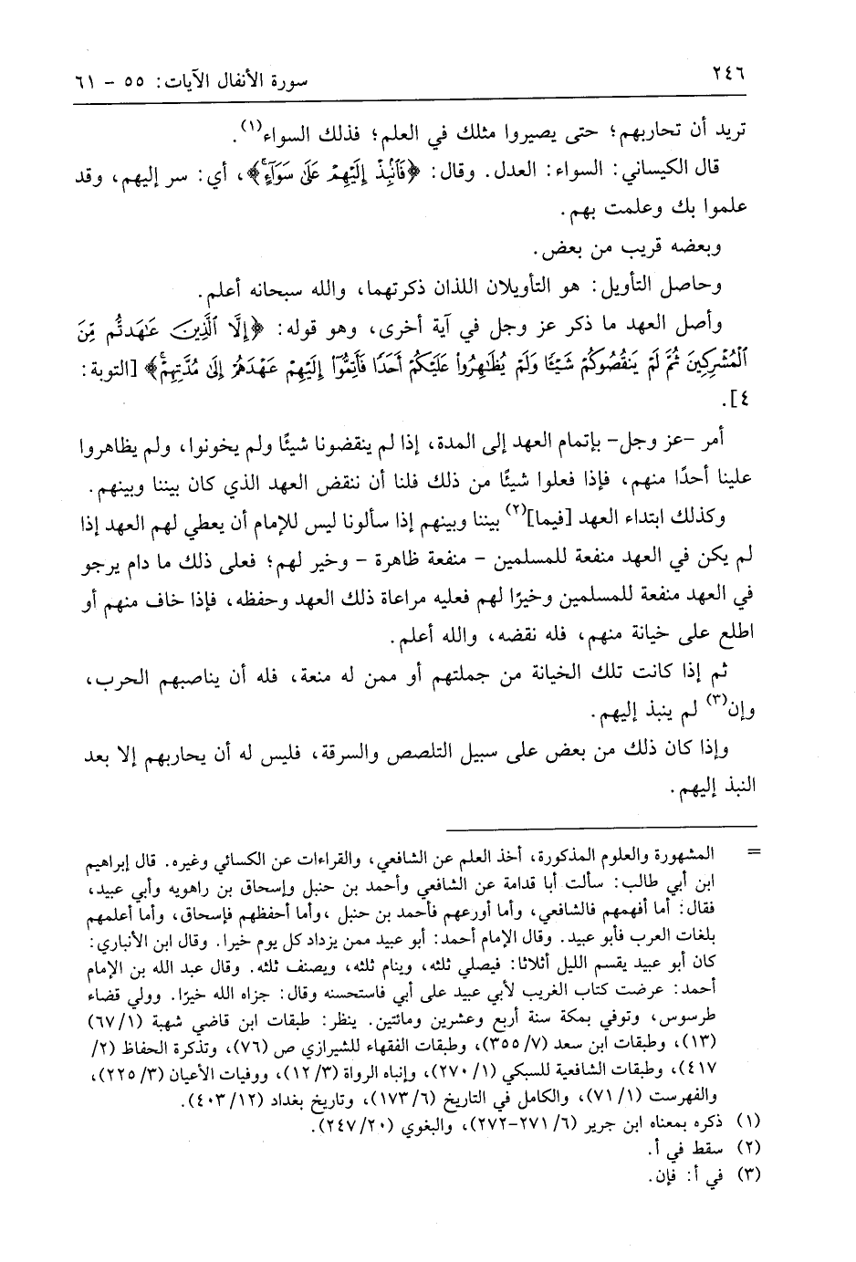 وأصل العهد ما ذكر عَزَّ وَجَلَّ في آية أخرى، وهو قوله: (إِلَّا الَّذِينَ عَاهَدْتُمْ مِنَ الْمُشْرِكِينَ ثُمَّ لَمْ يَنْقُصُوكُمْ شَيْئًا وَلَمْ يُظَاهِرُوا عَلَيْكُمْ أَحَدًا فَأَتِمُّوا إِلَيْهِمْ عَهْدَهُمْ إِلَى مُدَّتِهِمْ)