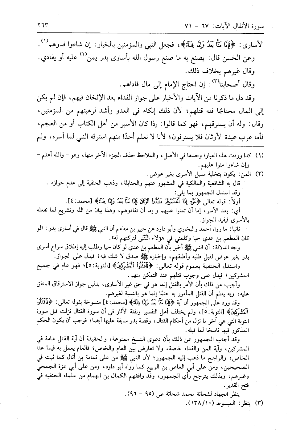الأسارى: (فَإِمَّا مَنًّا بَعْدُ وَإِمَّا فِدَاءً)، فجعل النبي والمؤمنين بالخيار: إن شاءوا فدوهم.