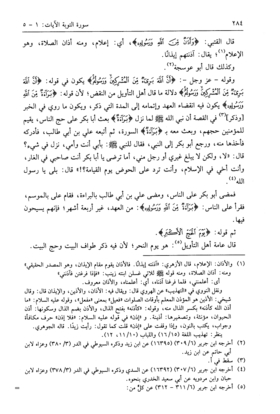 قَالَ الْقُتَبِيُّ: (وَأَذَانٌ مِنَ اللَّهِ وَرَسُولِهِ)، أي: إعلام، ومنه أذان الصلاة، وهو الإعلام؛ يقال: آذنتهم إيذانًا.