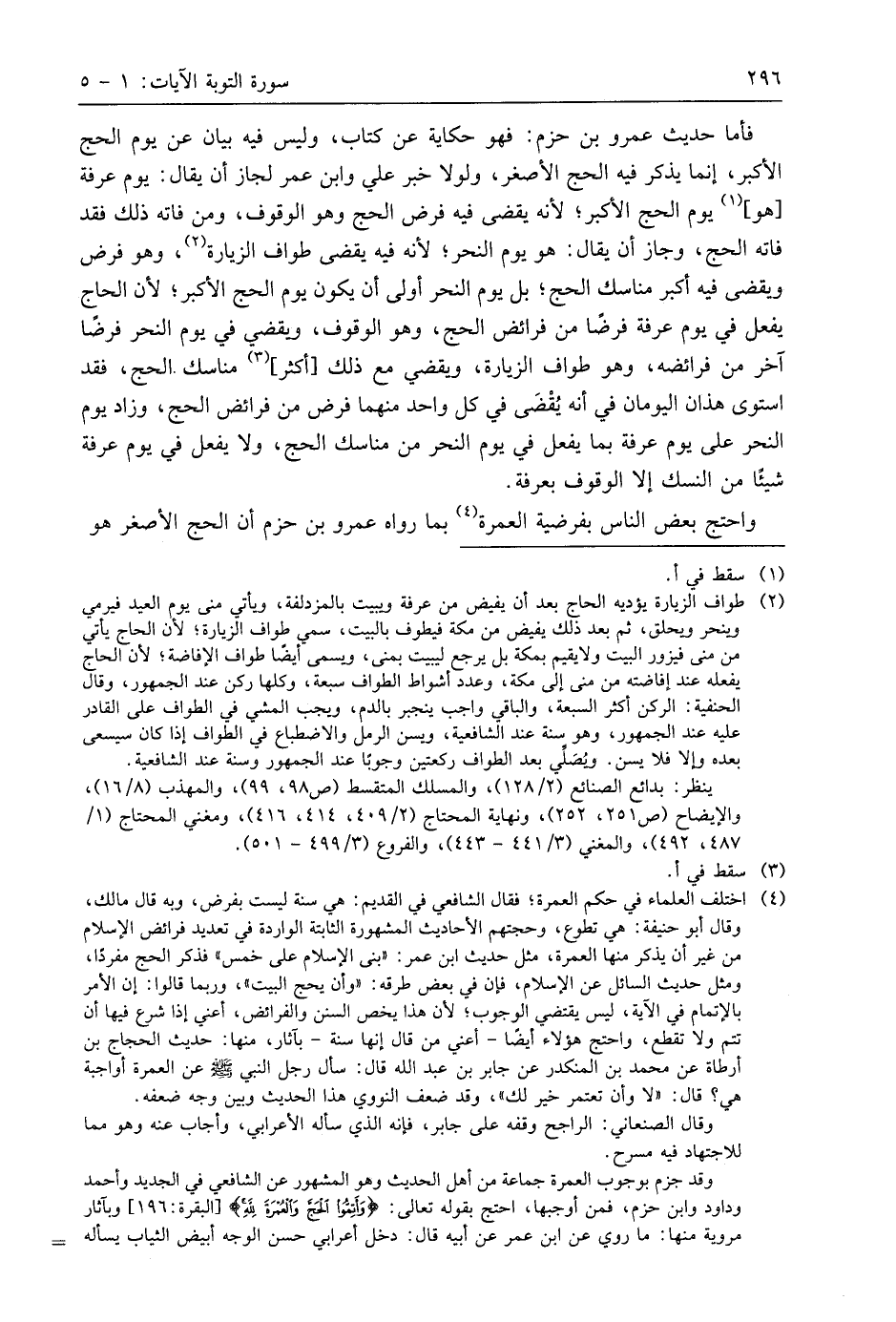 واحتج بعض الناس بفرضية العمرة بما رواه عمرو بن حزم أن الحج الأصغر هو