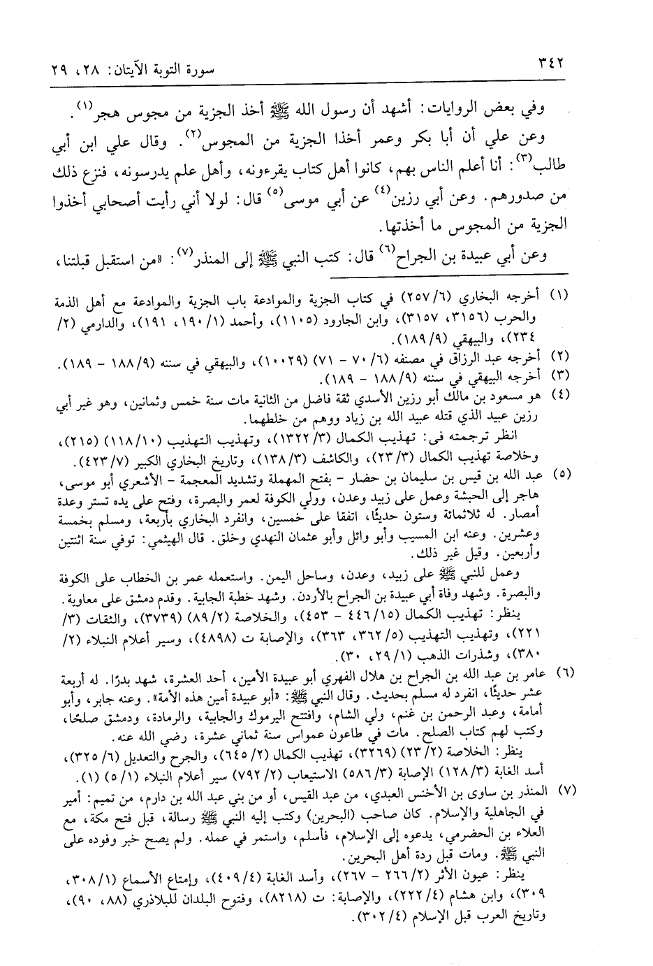 وفي بعض الروايات: أشهد أن رسول اللَّه - صَلَّى اللَّهُ عَلَيهِ وَسَلَّمَ - أخذ الجزية من مجوس هجر.
