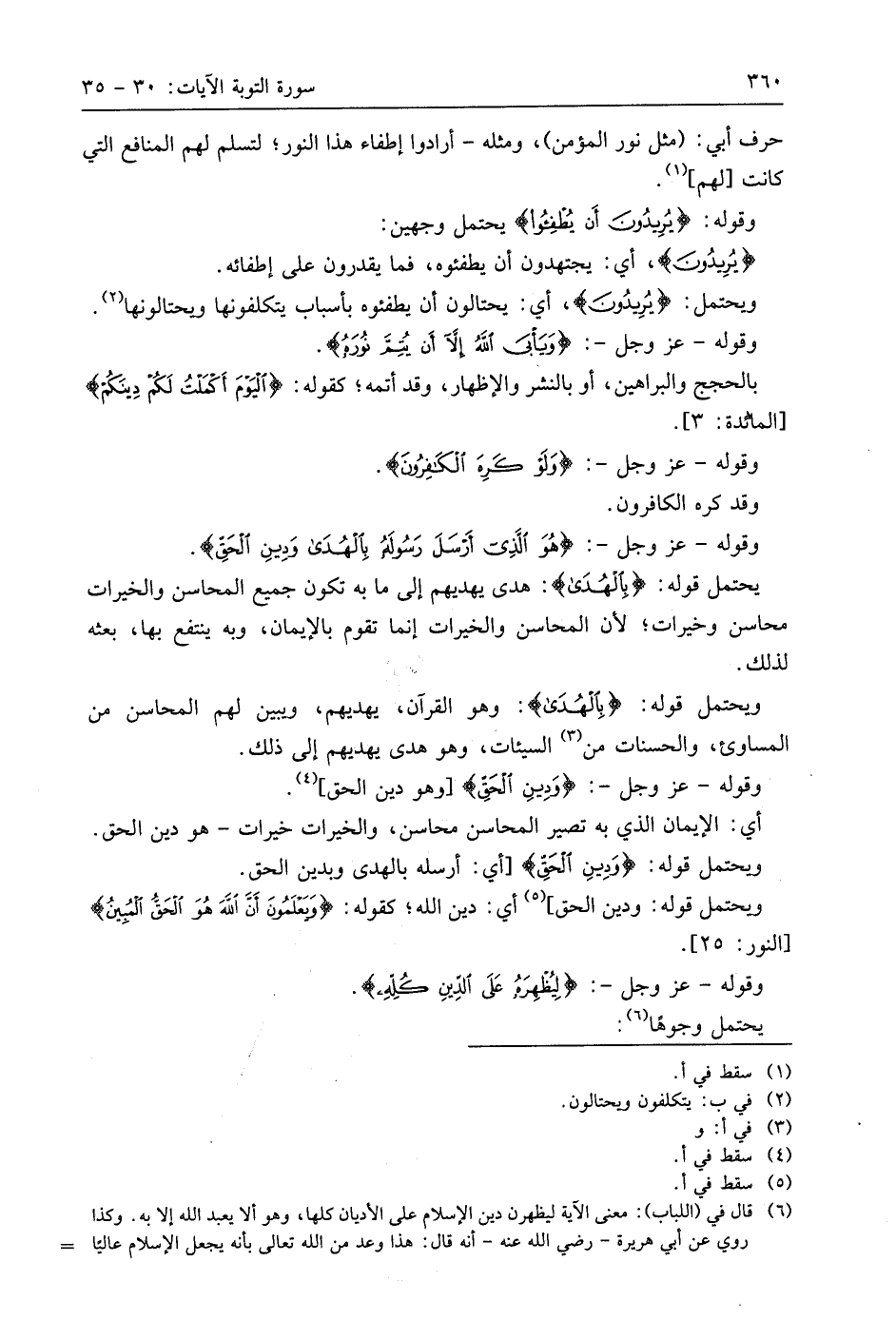 وقوله - عَزَّ وَجَلَّ -: (وَيَأْبَى اللَّهُ إِلَّا أَنْ يُتِمَّ نُورَهُ).
