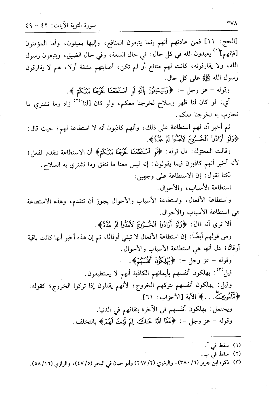 واستطاعة الأفعال، واستطاعة الأسباب والأحوال يجوز أن تتقدم، وهذه الاستطاعة هي استطاعة الأسباب والأحوال.