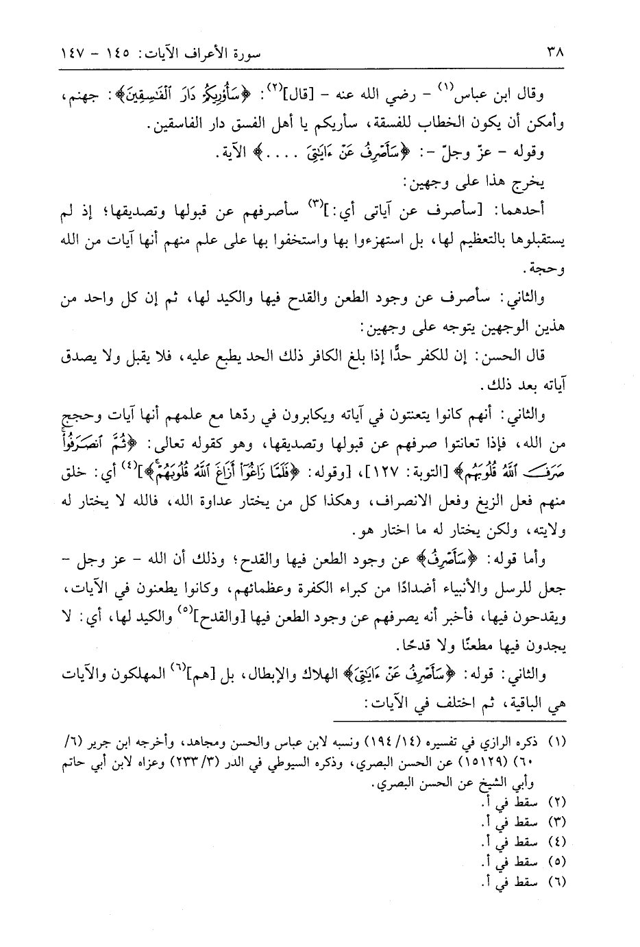 وقوله - عَزَّ وَجَلَّ -: (سَأَصْرِفُ عَنْ آيَاتِيَ الَّذِينَ يَتَكَبَّرُونَ فِي الْأَرْضِ بِغَيْرِ الْحَقِّ ... (146)