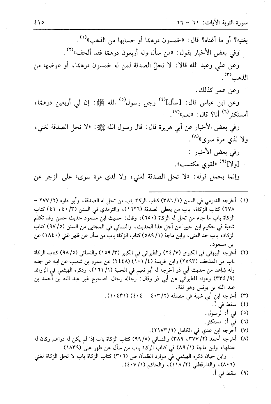 وعن ابن عَبَّاسٍ قال: سال رجل رسول اللَّه - صَلَّى اللَّهُ عَلَيهِ وَسَلَّمَ -: إن لي أربعين درهمًا، أمستكثر أنا؟ قال: " نعم ".