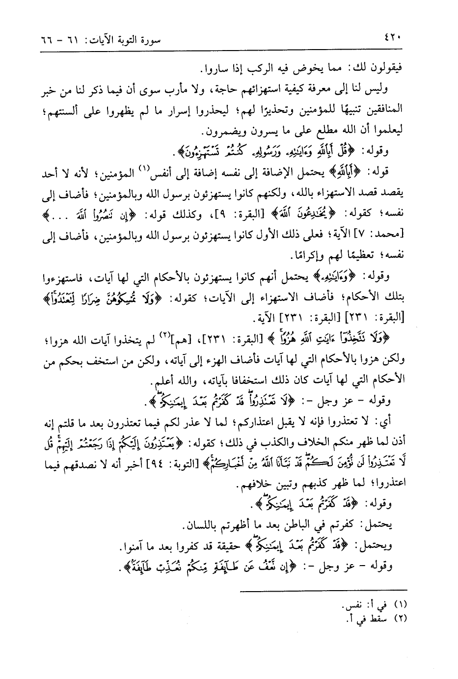وقوله - عَزَّ وَجَلَّ -: (لَا تَعْتَذِرُوا قَدْ كَفَرْتُمْ بَعْدَ إِيمَانِكُمْ إِنْ نَعْفُ عَنْ طَائِفَةٍ مِنْكُمْ نُعَذِّبْ طَائِفَةً بِأَنَّهُمْ كَانُوا مُجْرِمِينَ (66)