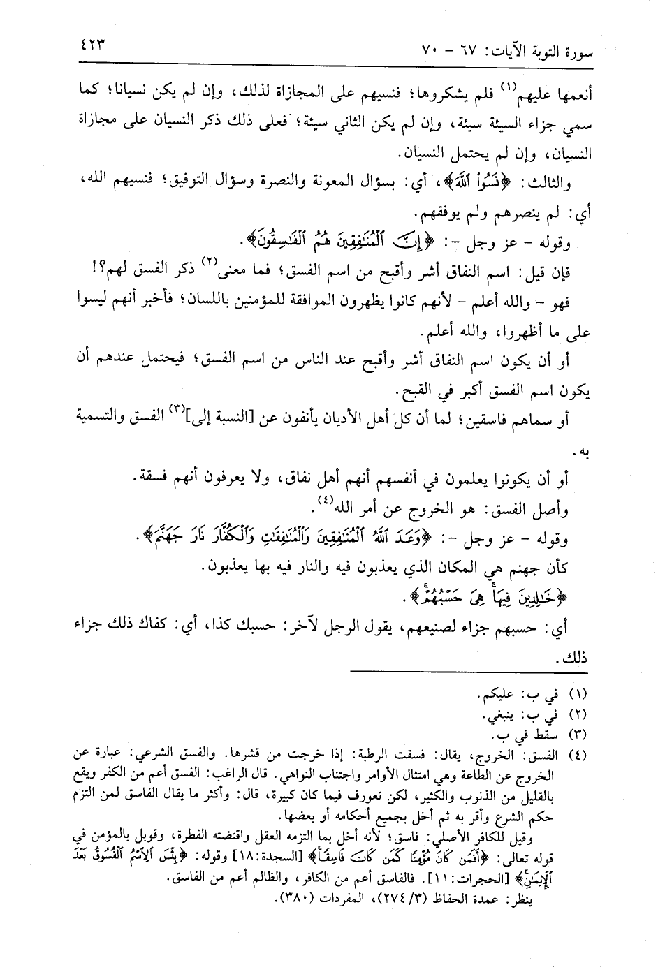 وقوله - عَزَّ وَجَلَّ -: (إِنَّ الْمُنَافِقِينَ هُمُ الْفَاسِقُونَ).