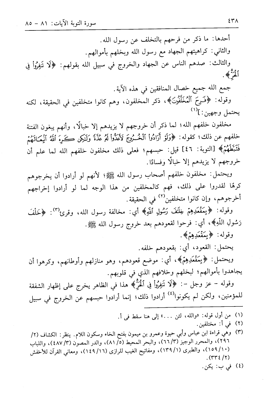 وقوله - عَزَّ وَجَلَّ -: (لَا تَنْفِرُوا فِي الْحَرِّ) هذا في الظاهر يخرج على إظهار الشفقة للمؤمنين، ولكن لم يكونوا أرادوا ذلك؛ إنما أرادوا حبسهم عن الخروج في سبيل