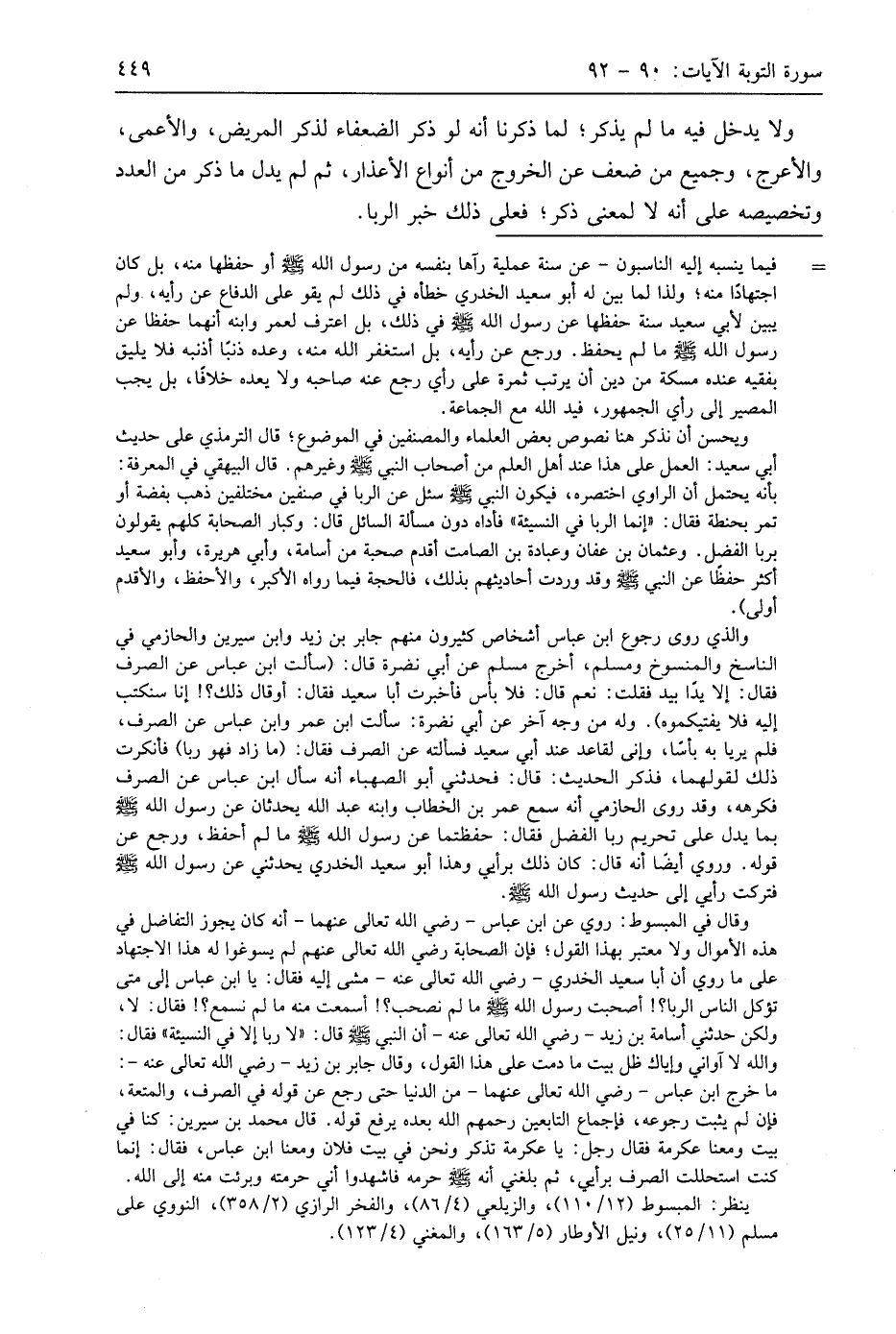 ولا يدخل فيه ما لم يذكر؛ لما ذكرنا أنه لو ذكر الضعفاء لذكر المريض، والأعمى، والأعرج، وجميع من ضعف عن الخروج من أنواع الأعذار، ثم لم يدل ما ذكر من العدد وتخصيصه على أنه لا لمعنى ذكر؛ فعلى ذلك خبر الربا.