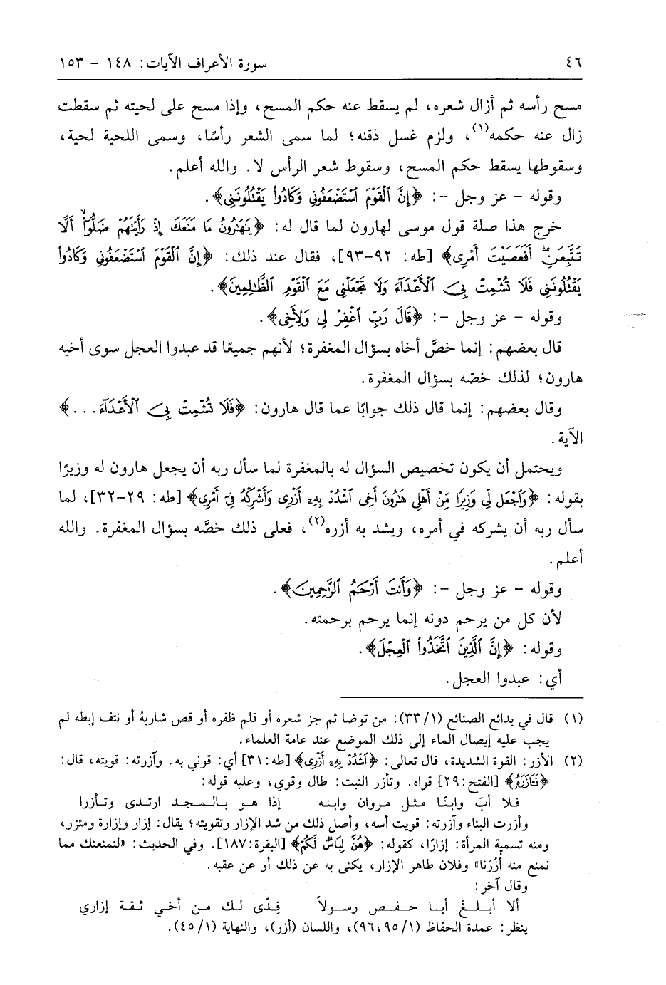وقوله - عَزَّ وَجَلَّ -: (قَالَ رَبِّ اغْفِرْ لِي وَلِأَخِي ... (151)