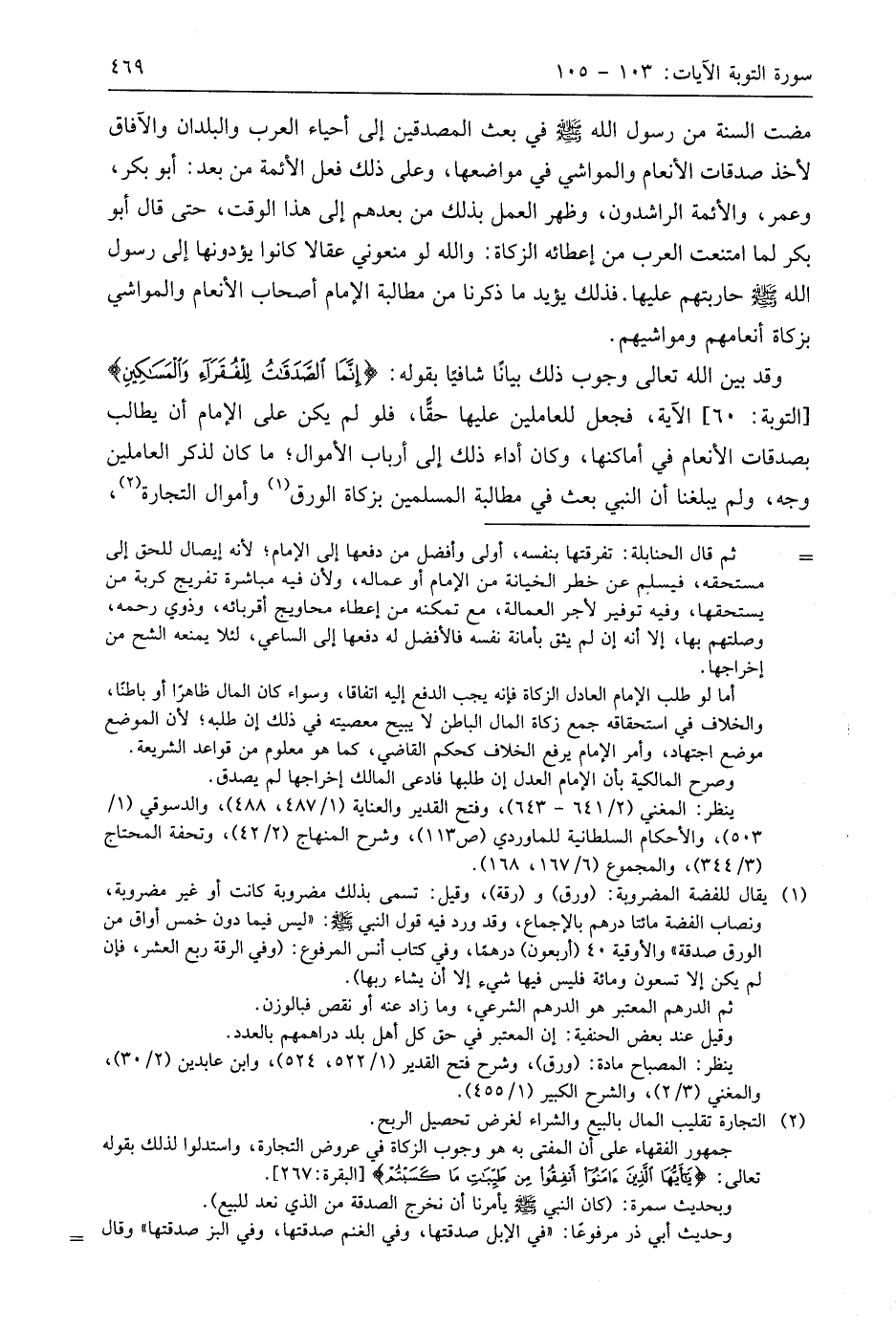 وقد بين اللَّه تعالى وجوب ذلك بيانًا شافيًا بقوله: (إِنَّمَا الصَّدَقَاتُ لِلْفُقَرَاءِ وَالْمَسَاكِينِ) الآية، فجعل للعاملين عليها حقًّا، فلو لم يكن على الإمام أن يطالب بصدقات الأنعام في أماكنها، وكان أداء ذلك إلى أرباب الأموال؛ ما كان لذكر العاملين وجه، ولم يبلغنا أن النبي بعث في مطالبة المسلمين بزكاة الورِق وأموال التجارة،