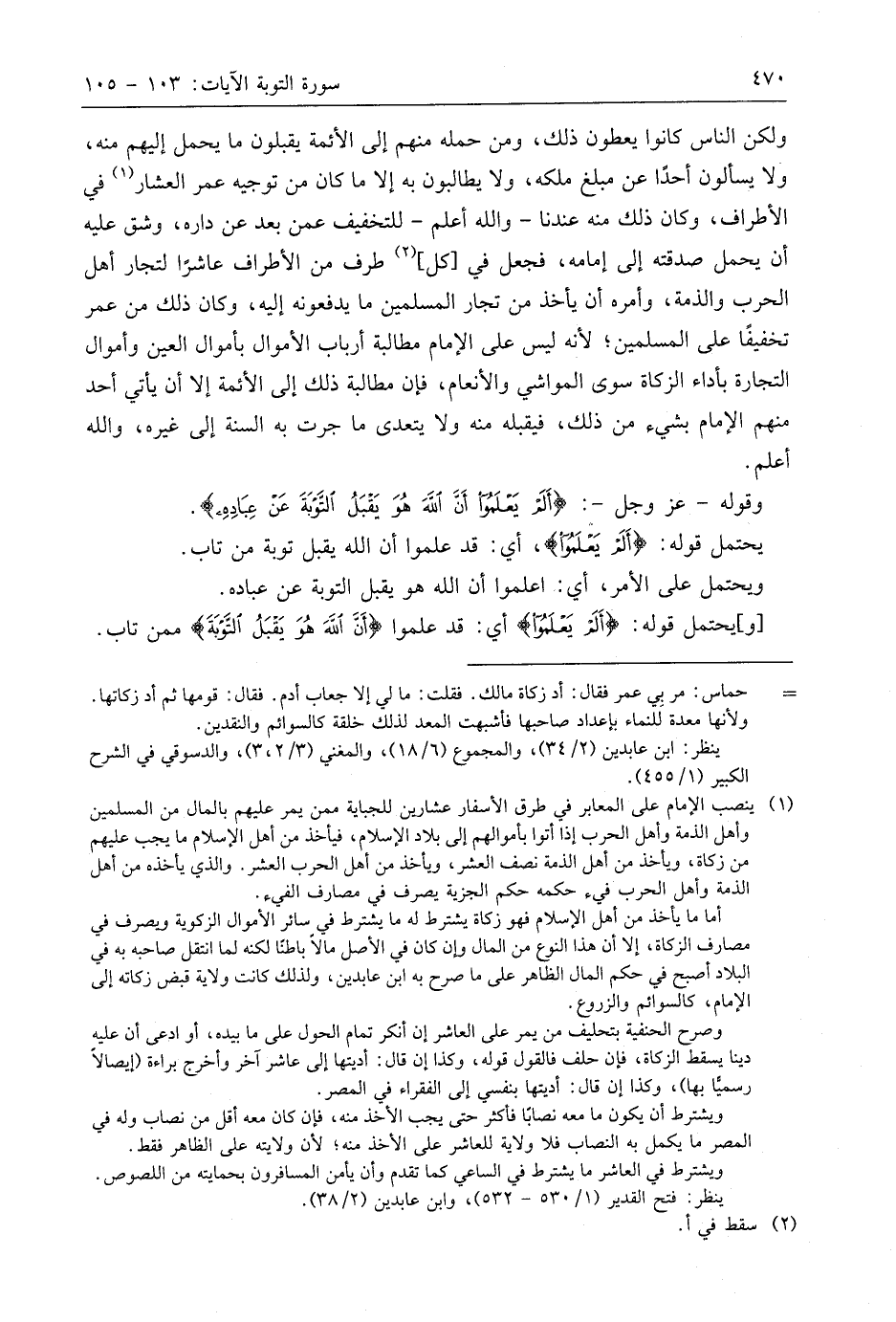 وقوله - عَزَّ وَجَلَّ -: (أَلَمْ يَعْلَمُوا أَنَّ اللَّهَ هُوَ يَقْبَلُ التَّوْبَةَ عَنْ عِبَادِهِ وَيَأْخُذُ الصَّدَقَاتِ وَأَنَّ اللَّهَ هُوَ التَّوَّابُ الرَّحِيمُ (104)