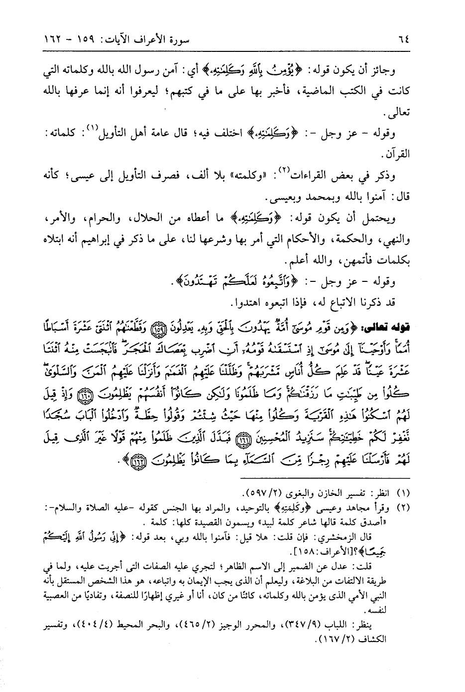 وقوله - عَزَّ وَجَلَّ -: (وَكَلِمَاتِهِ) اختلف فيه؛ قال عامة أهل التأويل: كلماته: القرآن.