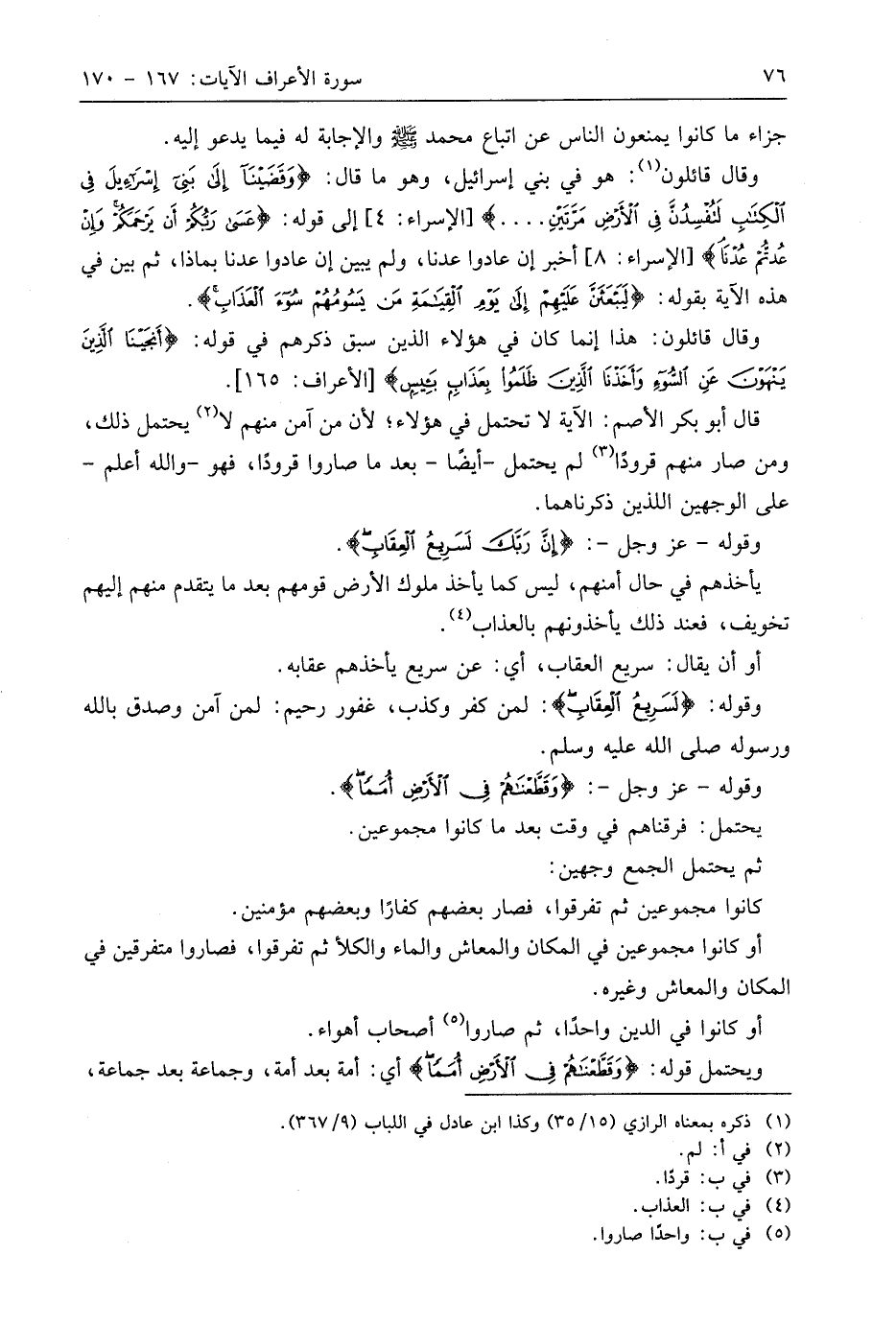 وقوله - عَزَّ وَجَلَّ -: (وَقَطَّعْنَاهُمْ فِي الْأَرْضِ أُمَمًا ... (168)