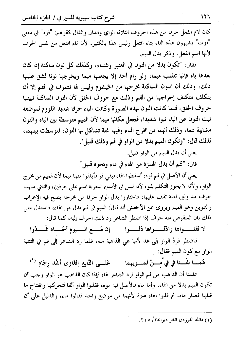علمنا أن الذاهب من فم الواو لرد الشاعر لها، فإذا كان الذاهب هو الواو وجب أن تكون الميم بدلا من الهاء. وأما ماء فالأصل فيه موه، فقلبوا الواو ألفا لتحركها وانفتاح ما قبلها فصار ماه، ثم قلبوا الهاء همزة لأنهما من موضع واحد فقالوا ماء، والدليل على أن