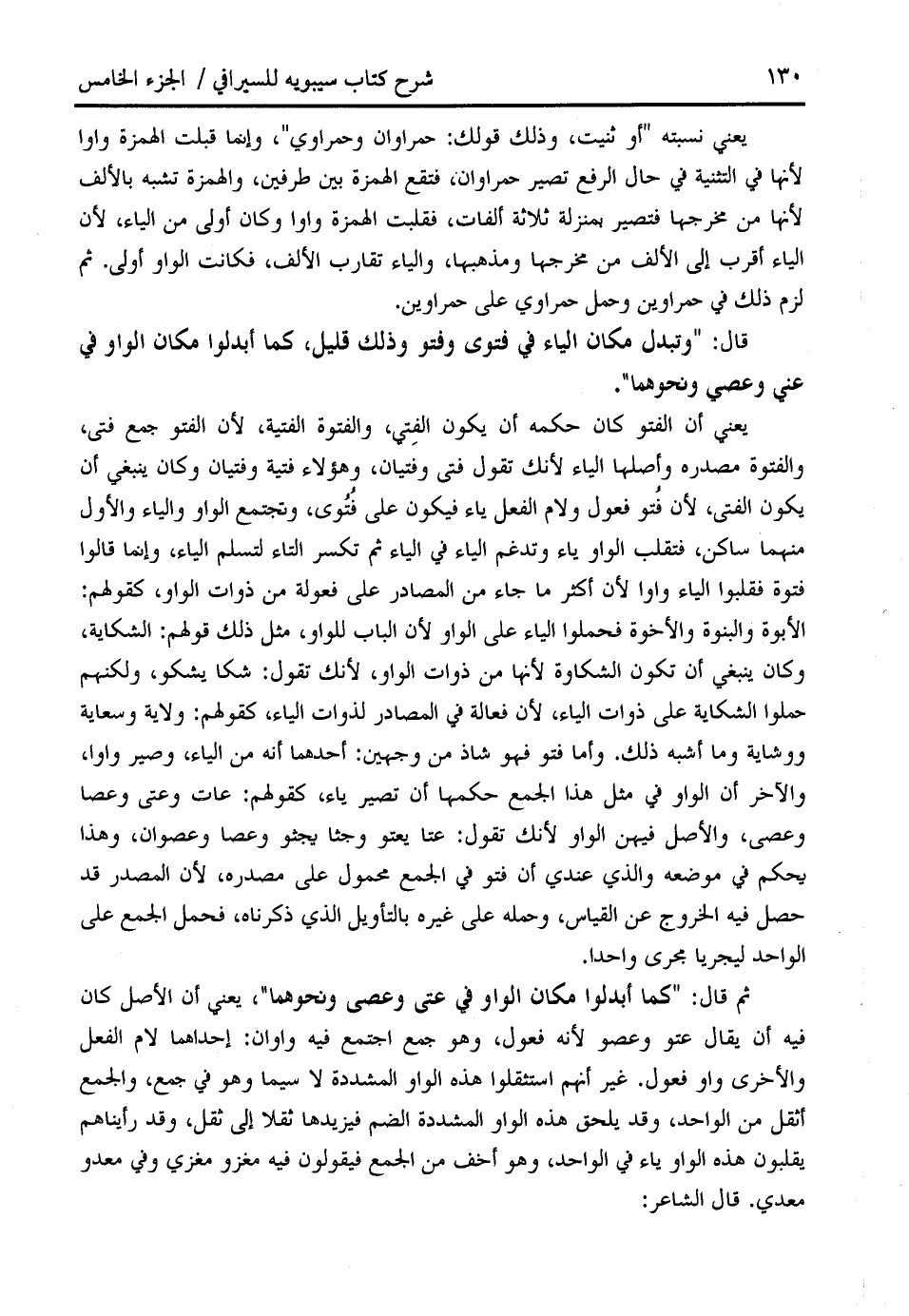 ثم قال: " كما أبدلوا مكان الواو في عتى وعصى ونحوهما "، يعني أن الأصل كان فيه أن يقال عتو وعصو لأنه فعول، وهو جمع اجتمع فيه واوان: إحداهما لام الفعل والأخرى واو فعول. غير أنهم استثقلوا هذه الواو المشددة لا سيما وهو في جمع، والجمع أثقل من الواحد، وقد يلحق هذه الواو المشددة الضم فيزيدها ثقلا إلى ثقل، وقد رأيناهم يقلبون هذه الواو ياء في الواحد، وهو أخف من الجمع فيقولون فيه مغزو مغزي وفي معدو معدي. قال الشاعر: