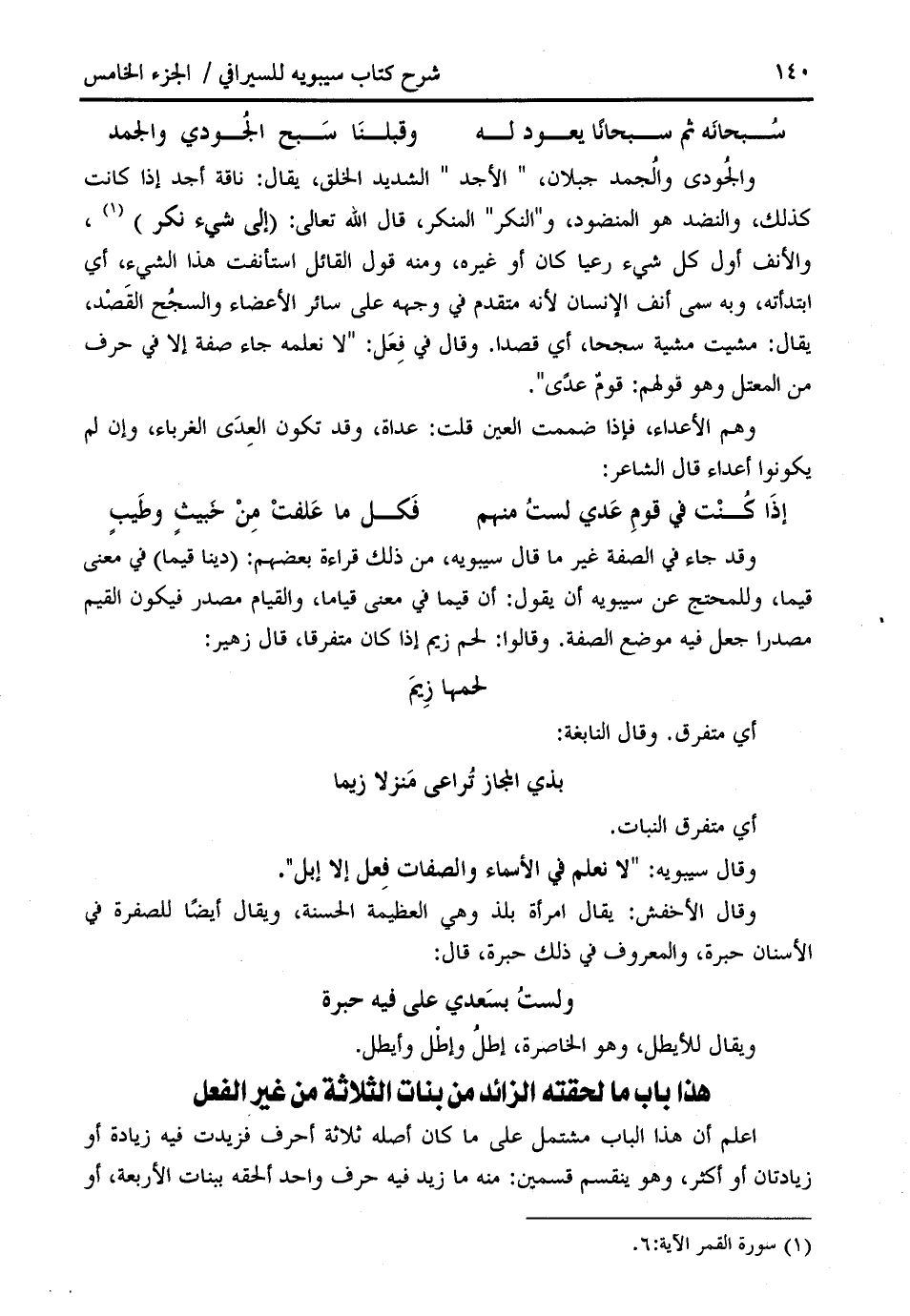 وقال سيبويه: " لا نعلم في الأسماء والصفات فعل إلا إبل ".