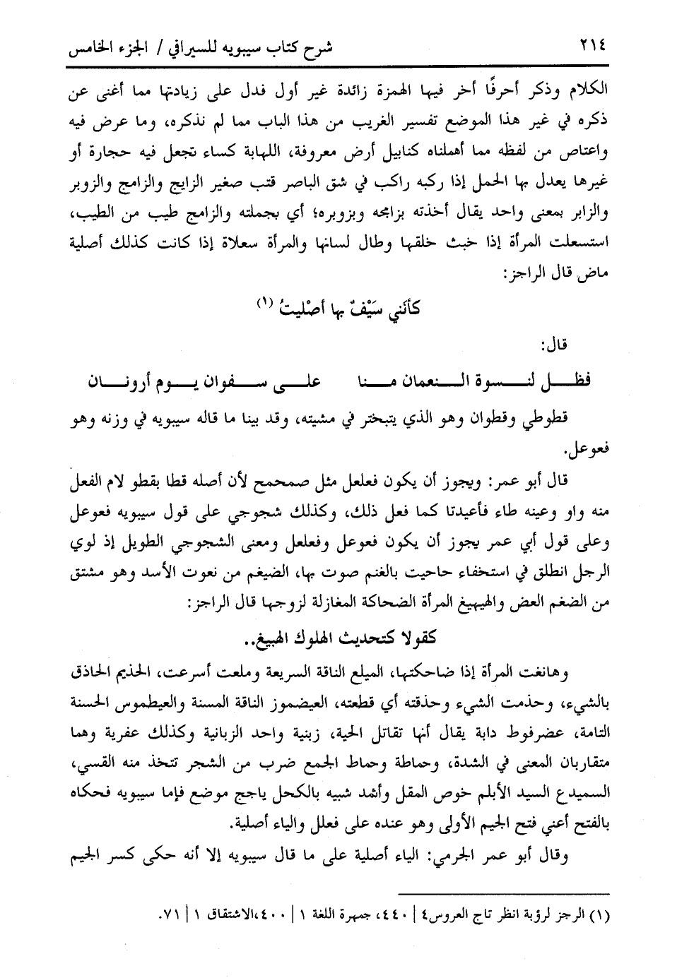 (¬1) الرجز لرؤبة انظر تاج العروس 4/ 440، جمهرة اللغة 1/ 400، الاشتقاق 1/ 71.
