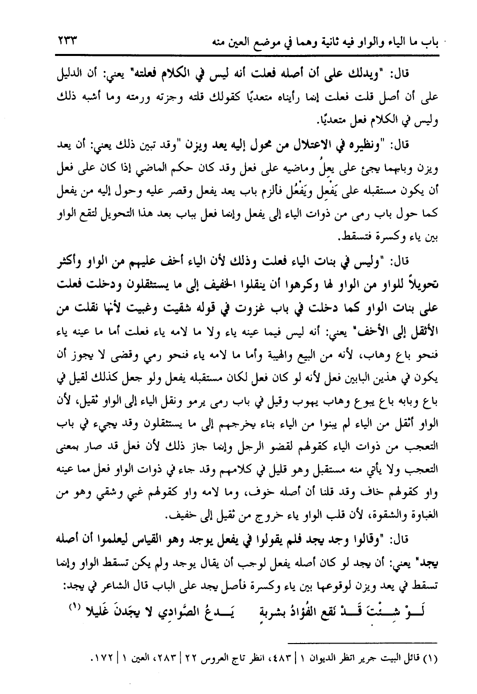 (¬1) قائل البيت جرير انظر الديوان 1/ 483، انظر تاج العروس 22/ 283، العين 1/ 172.
